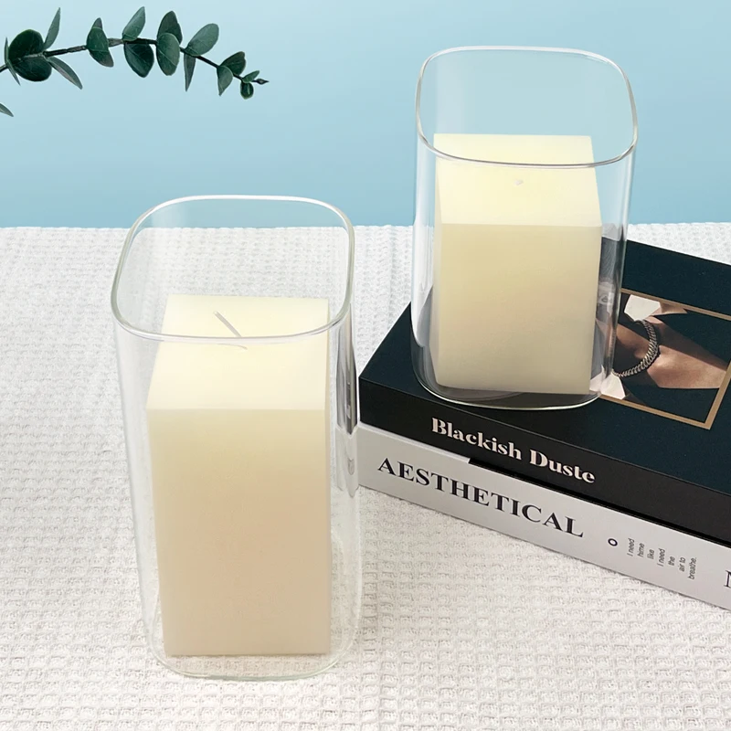 Custom Size Glass Jar Candle Vase Glass Square Candle Cover Vessel For Home Decor