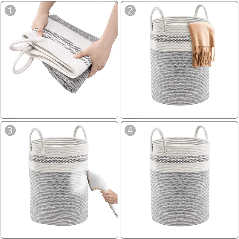 Laundry Hamper with Handles Decorative Basket for Living room Woven Storage Basket for Toys Bin,Pillows, Blankets,Clothes