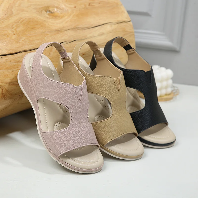Wholesale Summer Soft Breathable Thick Bottom Wedges Sandals Anti-Slip Versatile Seaside Beach Casual Outdoor Women Sandals