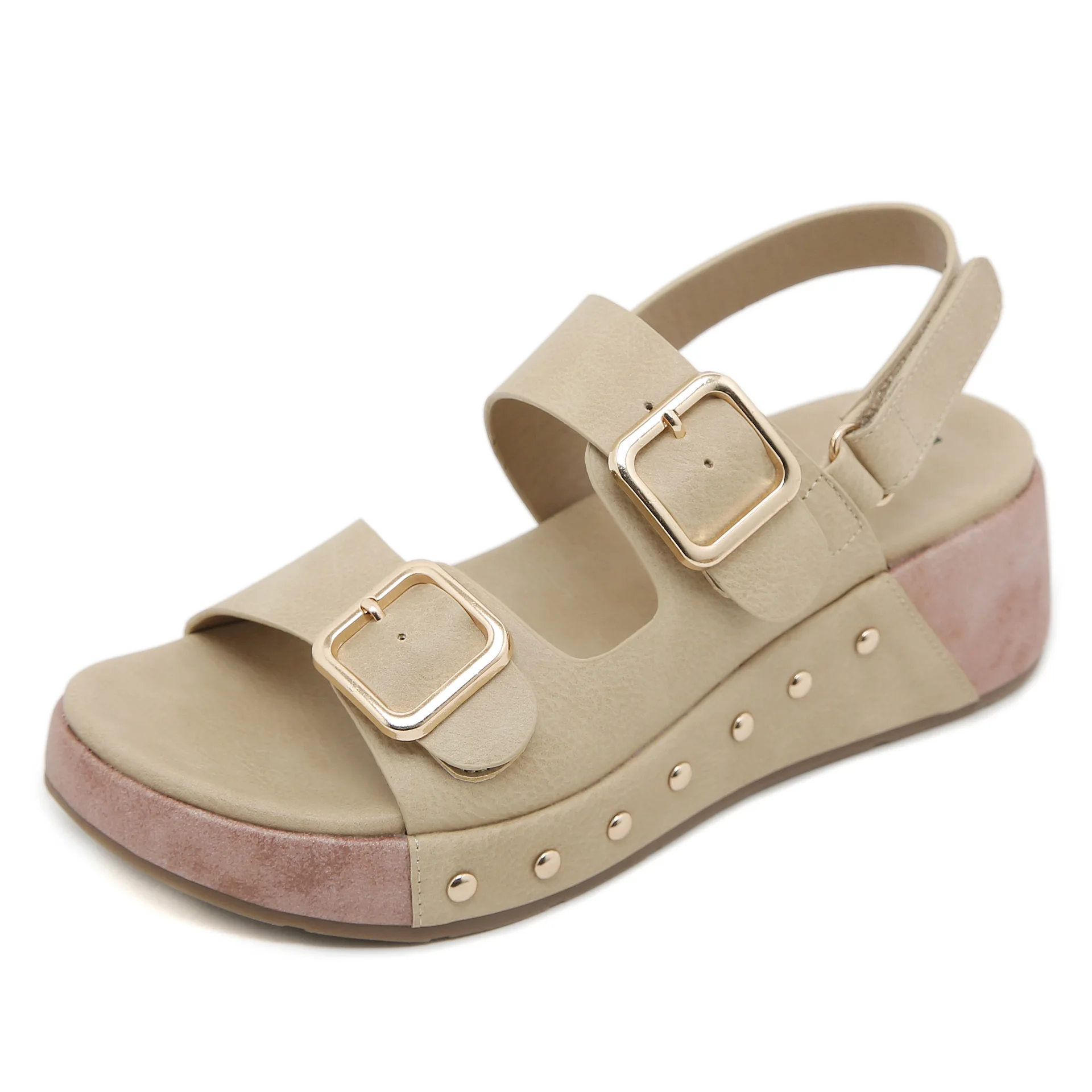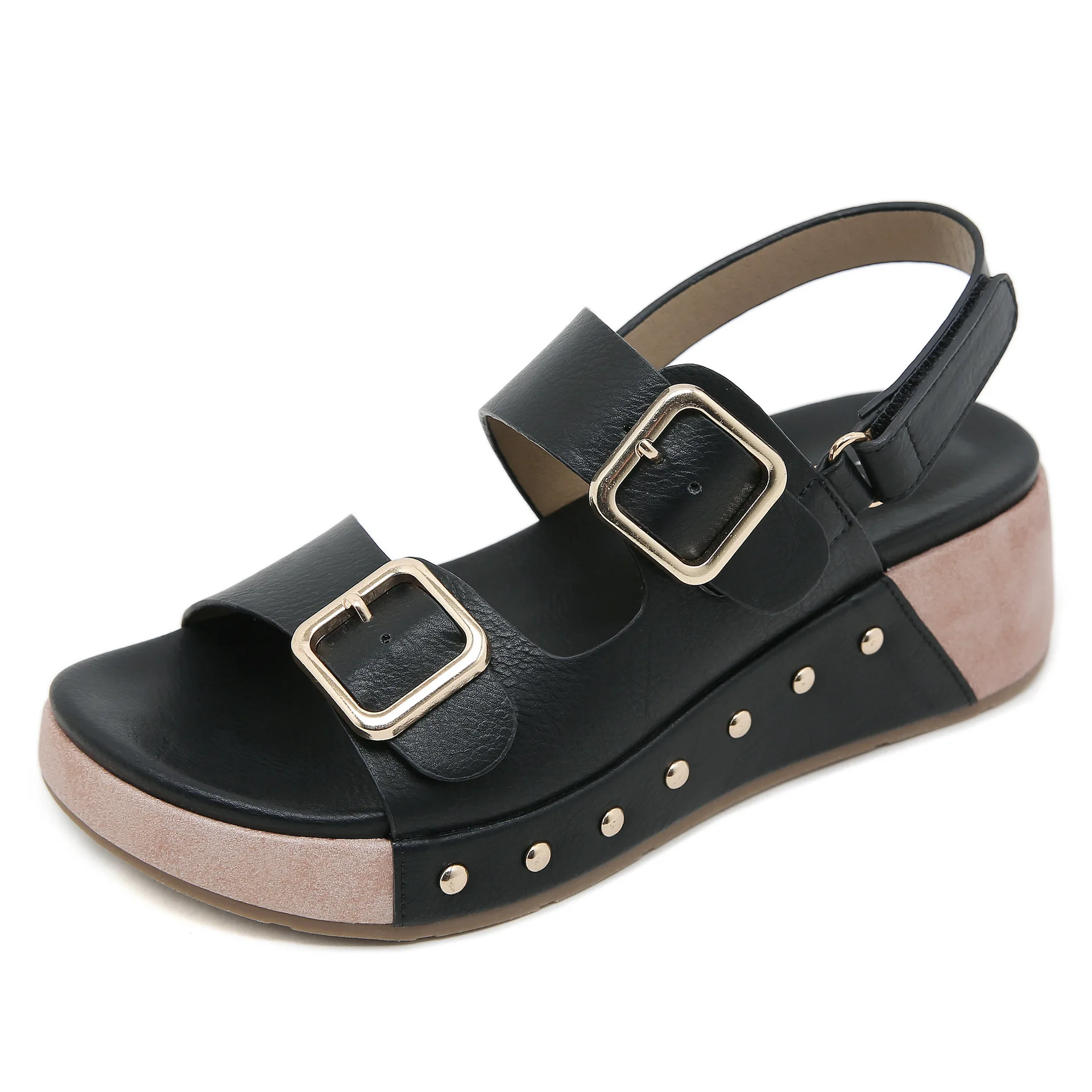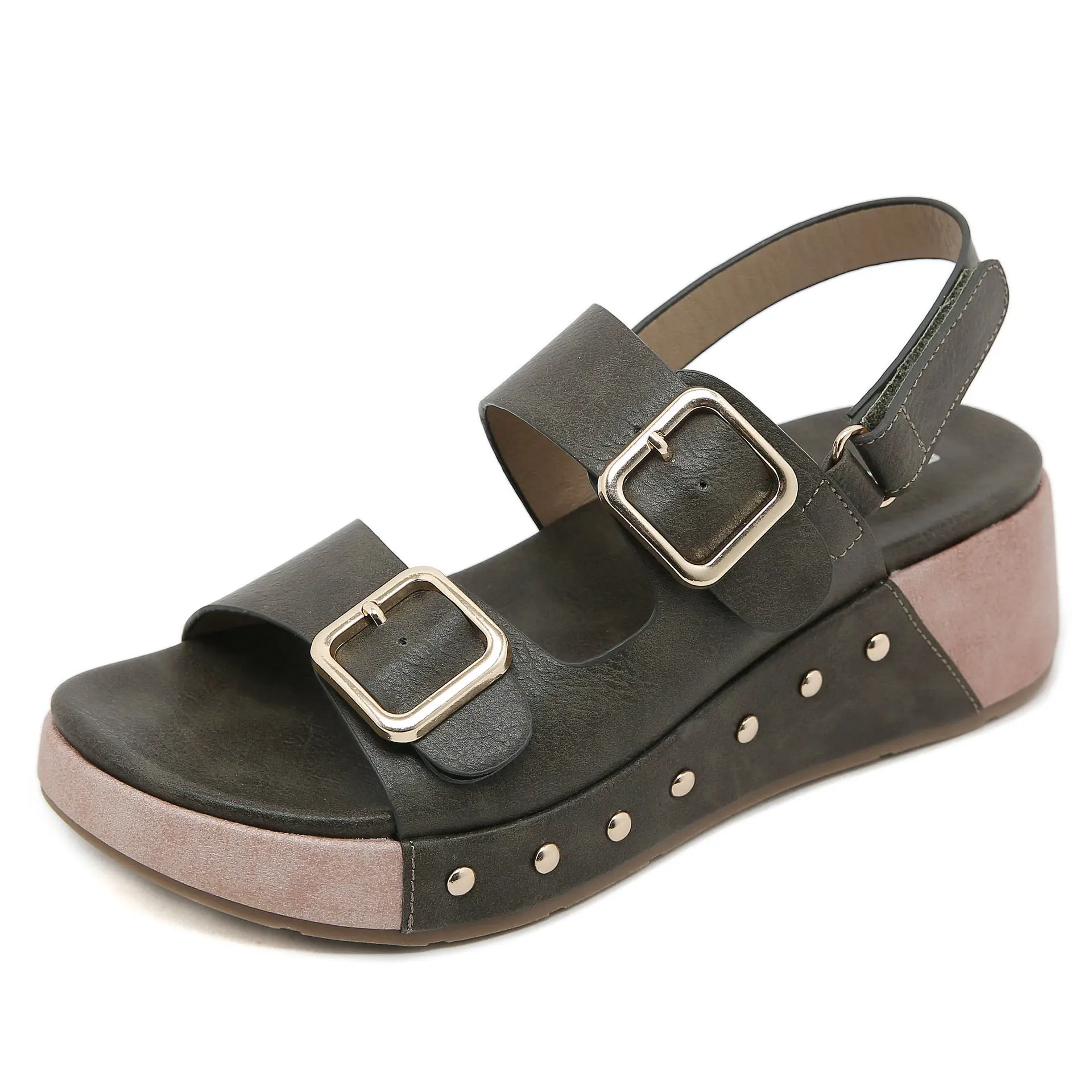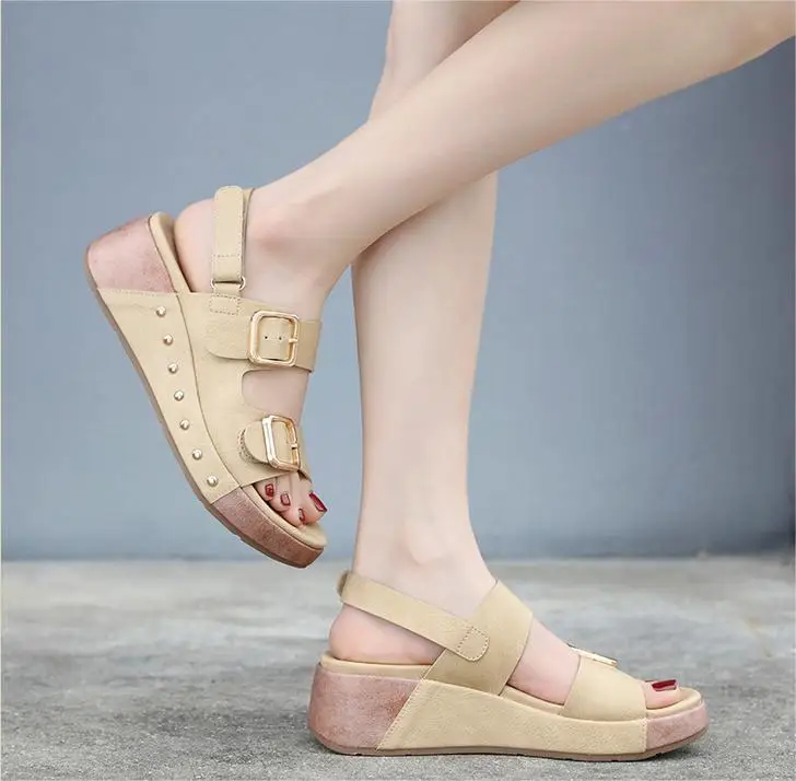 2024 New Summer Comfortable Thick Sole Buckle Simple Wedges Sandals Anti-Slip Casual Outdoor Women's Sandals