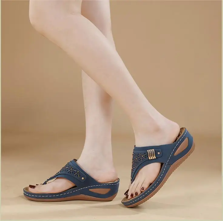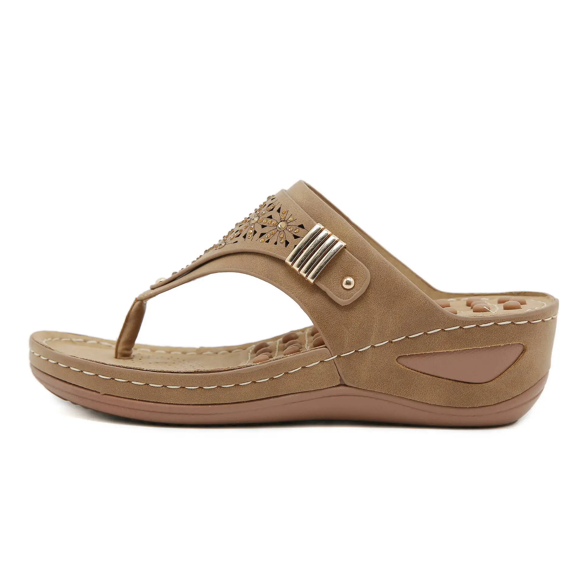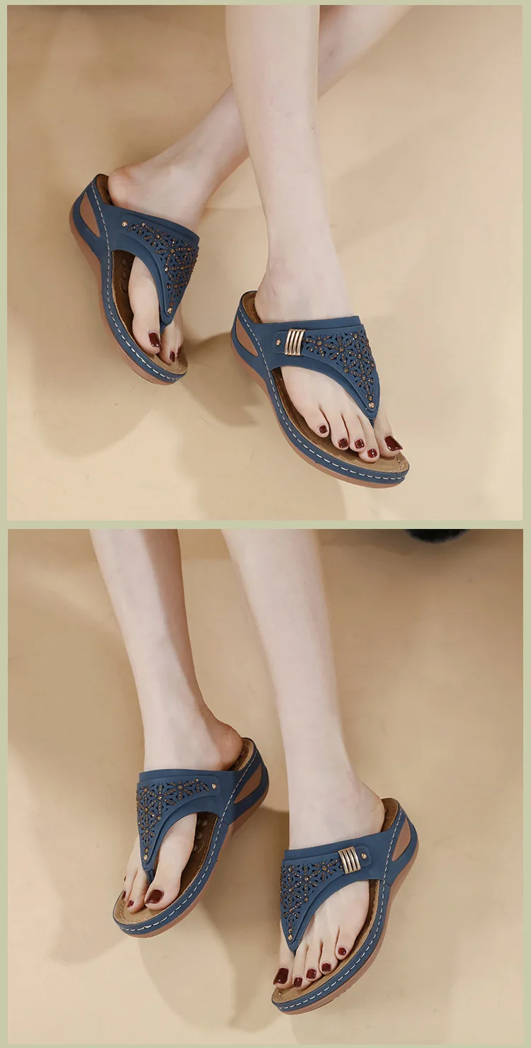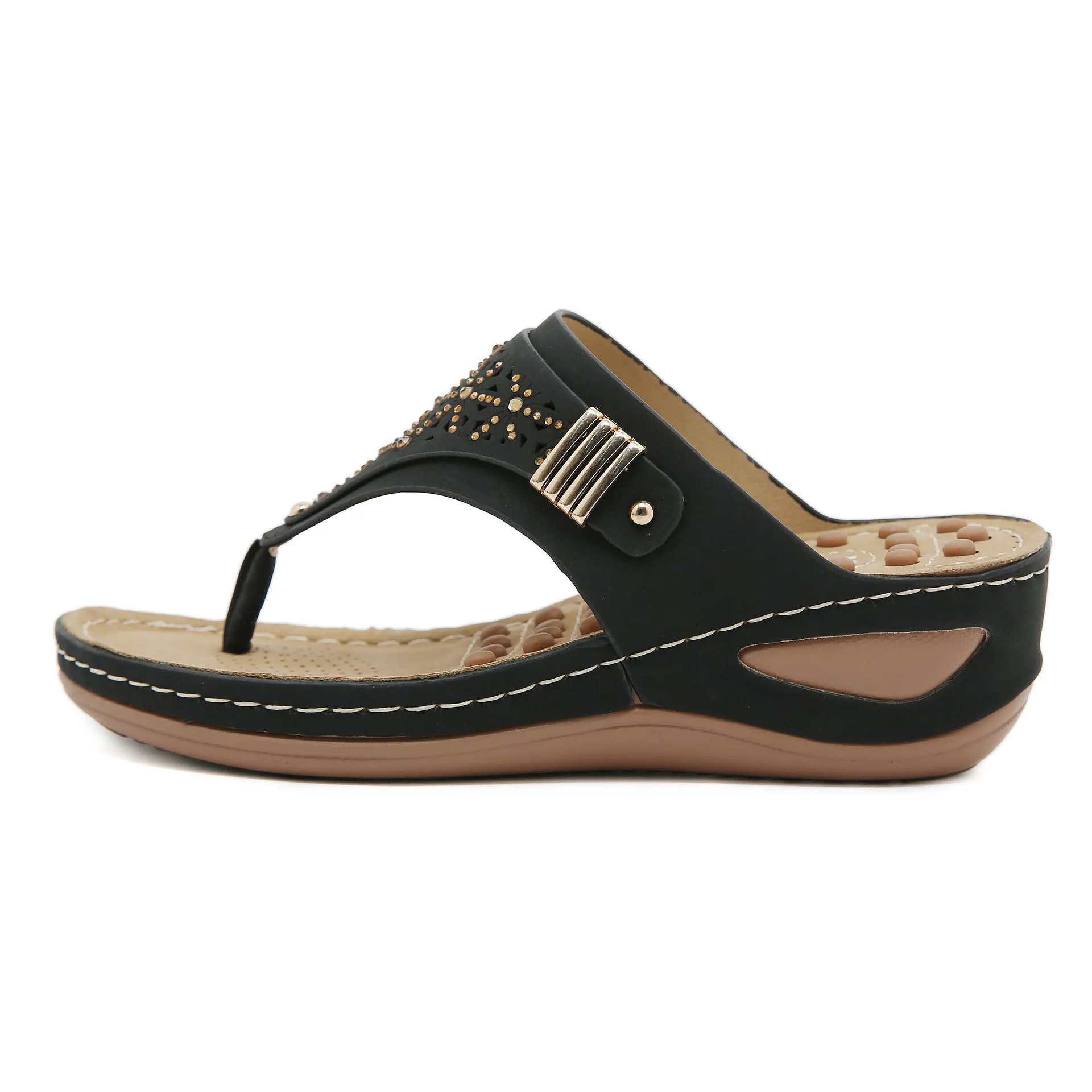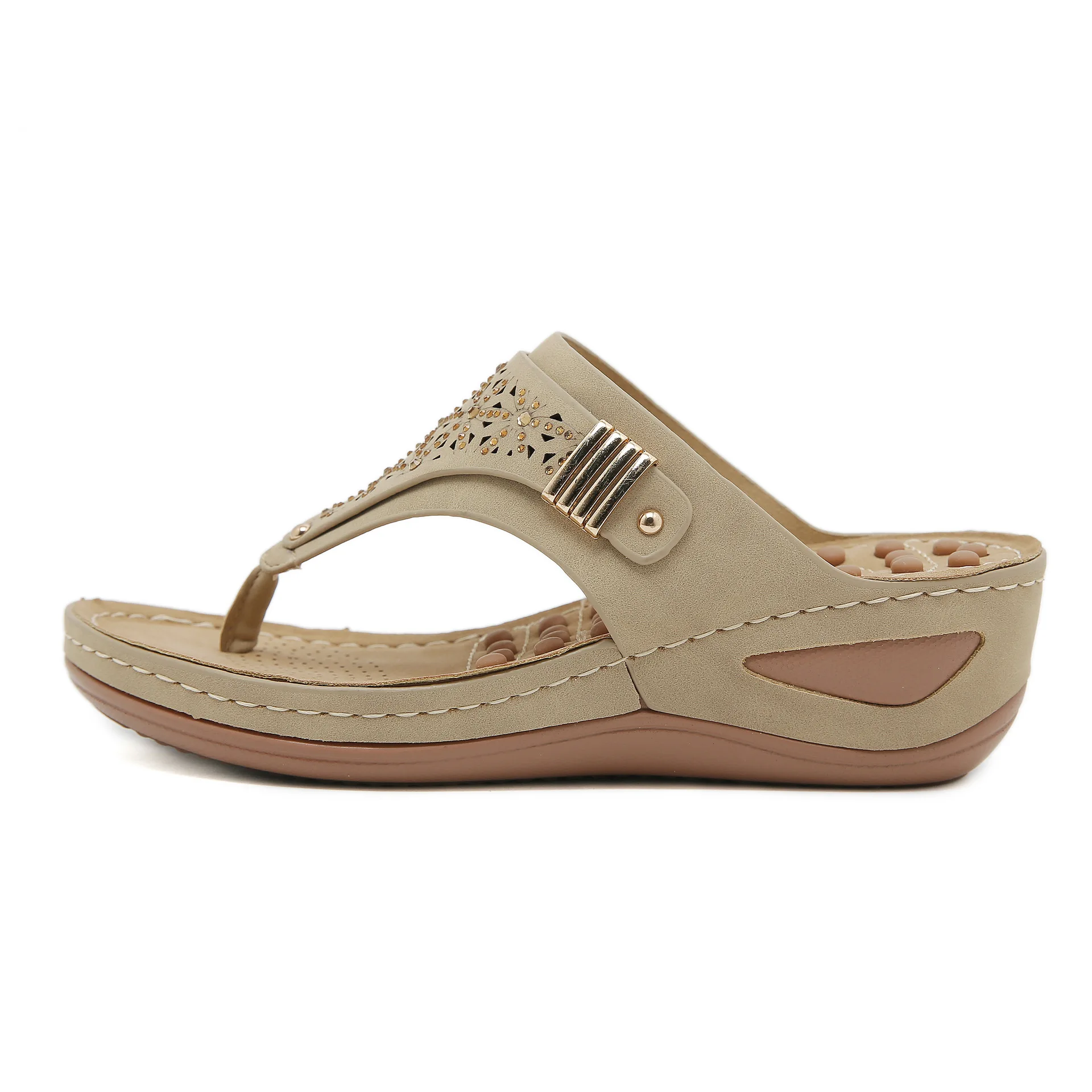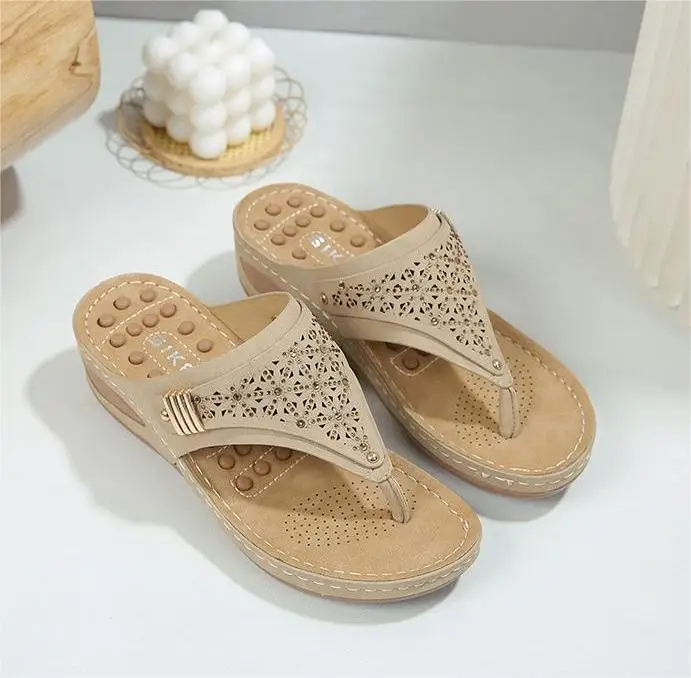 New 2024 Summer Anti-Slip Slippers Simple Hollow Wedge Ethnic Massage Granules Large Size Slippers for Women