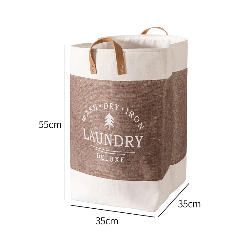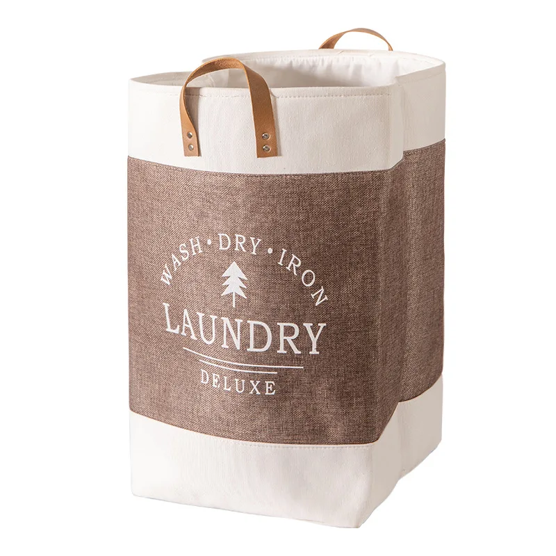 Foldable Dirty Clothes Basket Easily Transport Laundry Hamper Basket with PU Handle