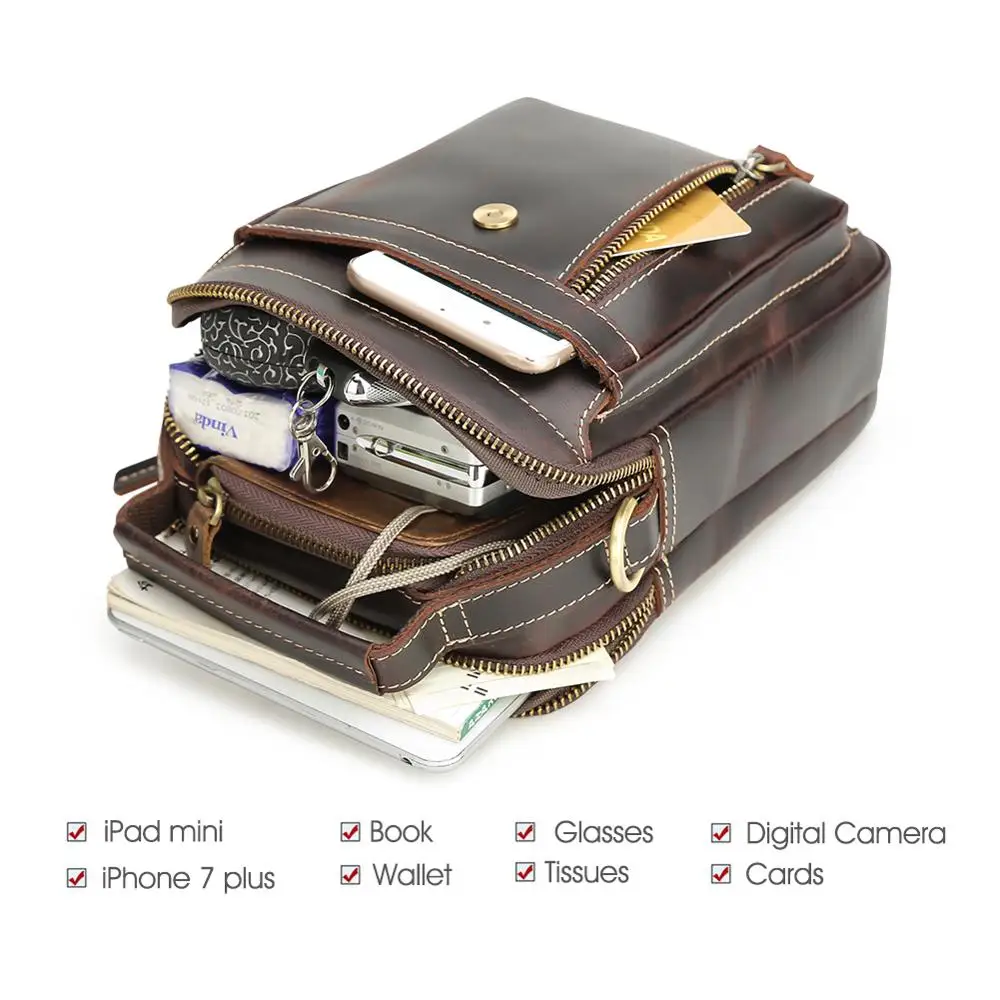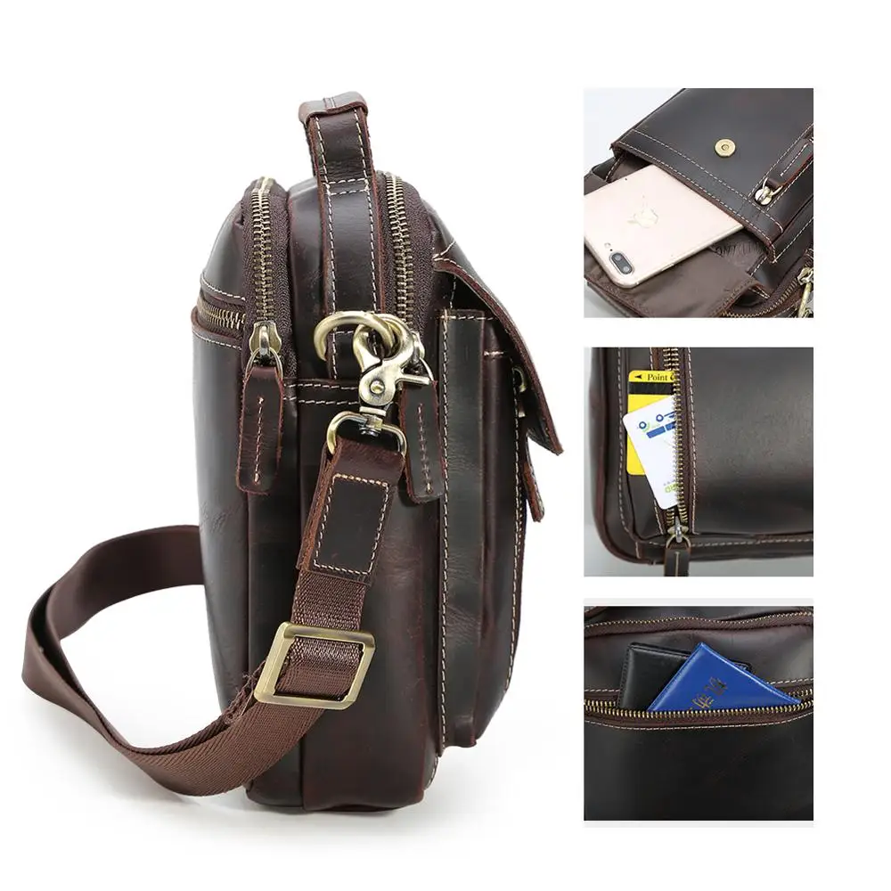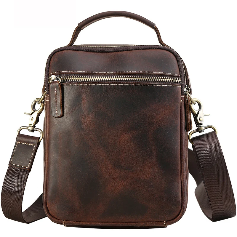 Vintage Style Men's Custom Logo Genuine Leather Crossbody Messenger Sling Bag Fashion Shoulder Bag