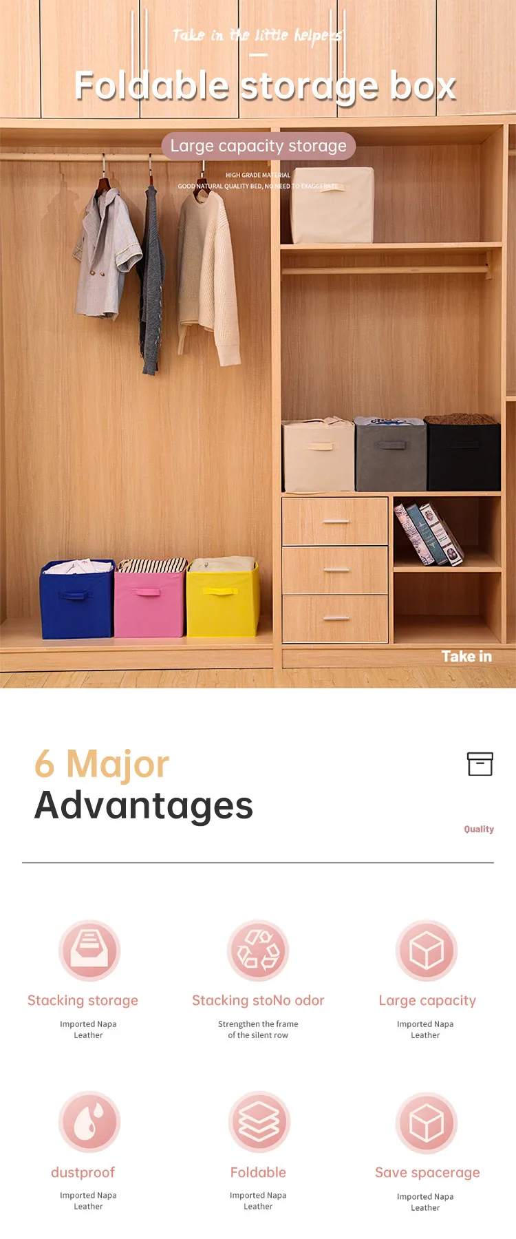 Square Foldable Fabric Storage Cube Bins Collapsible Clothes Organizer Box with Handle
