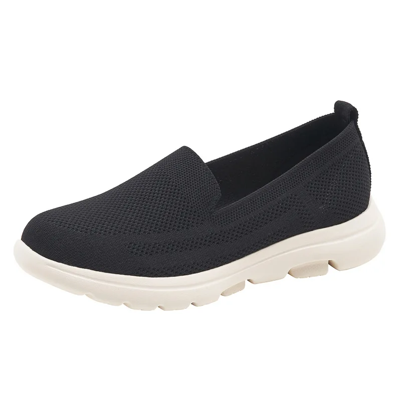 Hotsale Anti-Slip Round Toe Middle-aged and Elderly Flywoven Ladies Flat Shoes Comfortable Breathable Walking Women Flat Shoes