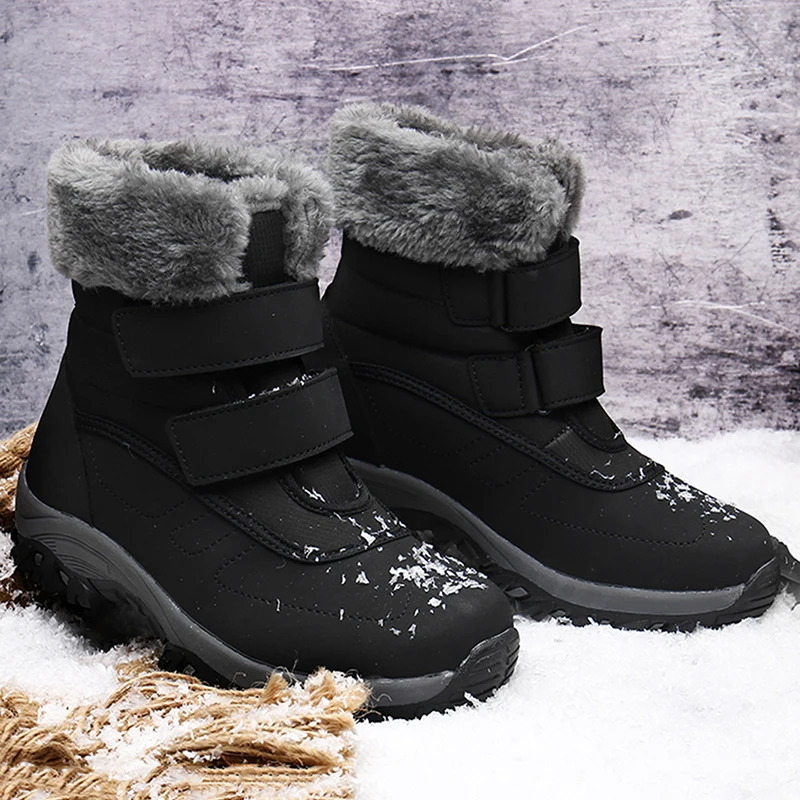 women ankle ladies long waterproof snow fluffy fur hiking outdoor winter new round toe chunky heel leather boots for women girls