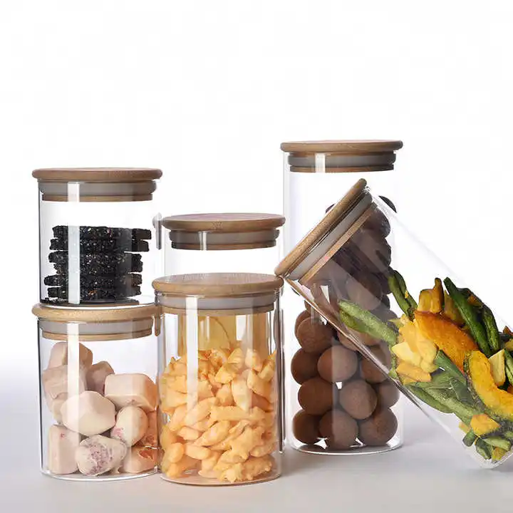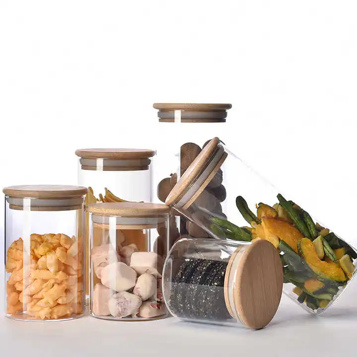 Glass Manufacturer Home kitchen storage high transparent high borosilicate Cylinder Glass Jar Glass canistor for kitchen