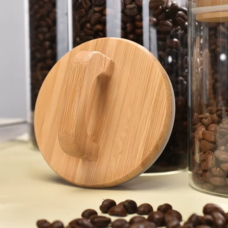 New arrival High Borosilicate Glass kitchen Sealed Storage jar for food storage spice honey coffee With Handle Bamboo Lid