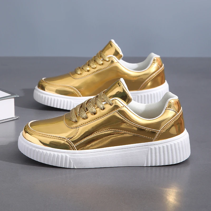 New Style Women Gold Silver Skateboard Sneakers Flats Female Athlete Running Shoes Trendy Lady Girls Fitness Walking Shoes