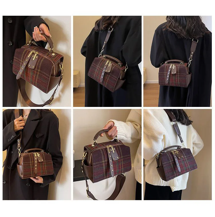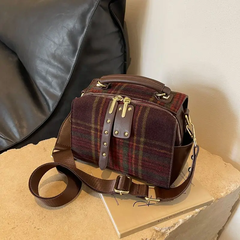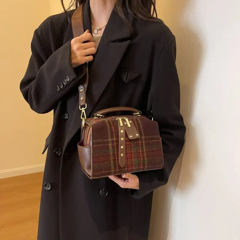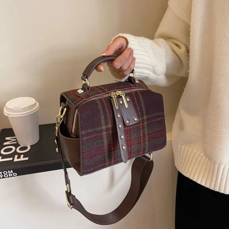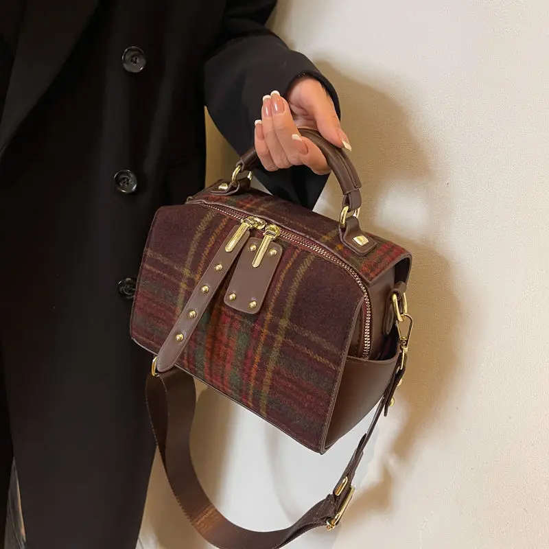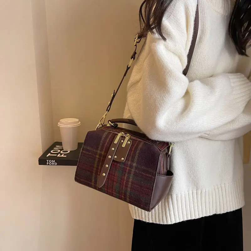High end plaid autumn and winter 2024 new high-end texture hand-held crossbody bag plaid women's tartan bag