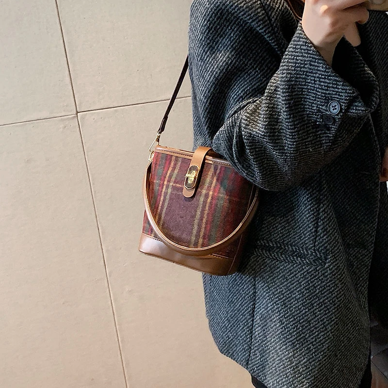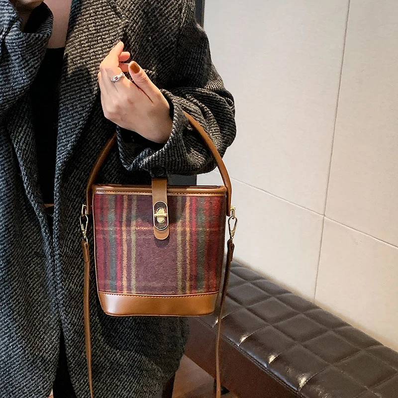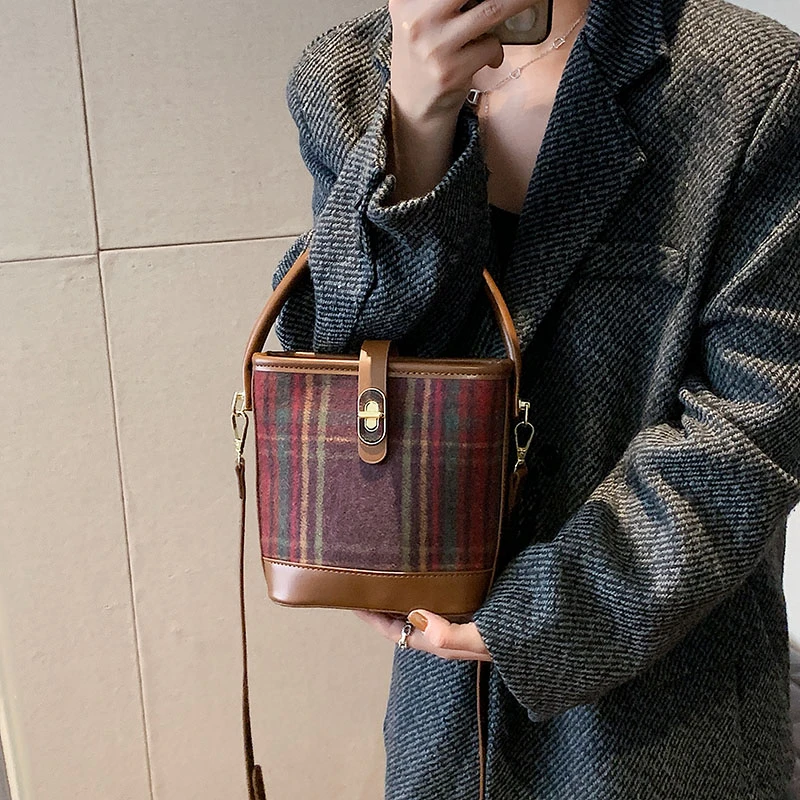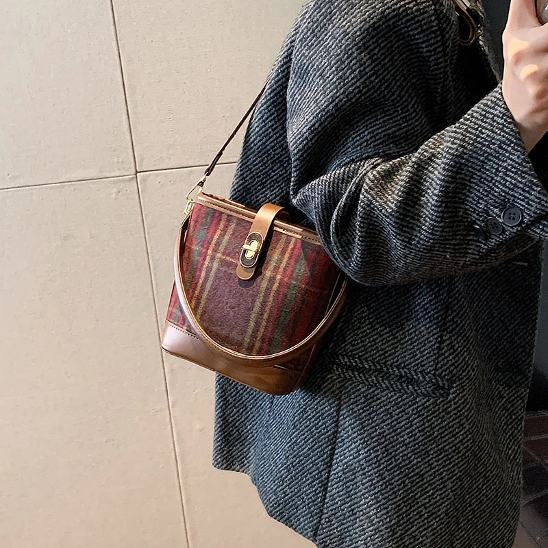 High End Winter Women's Handbag Tote with Single Shoulder Crossbody Large Capacity with PU Lining women's tartan bag