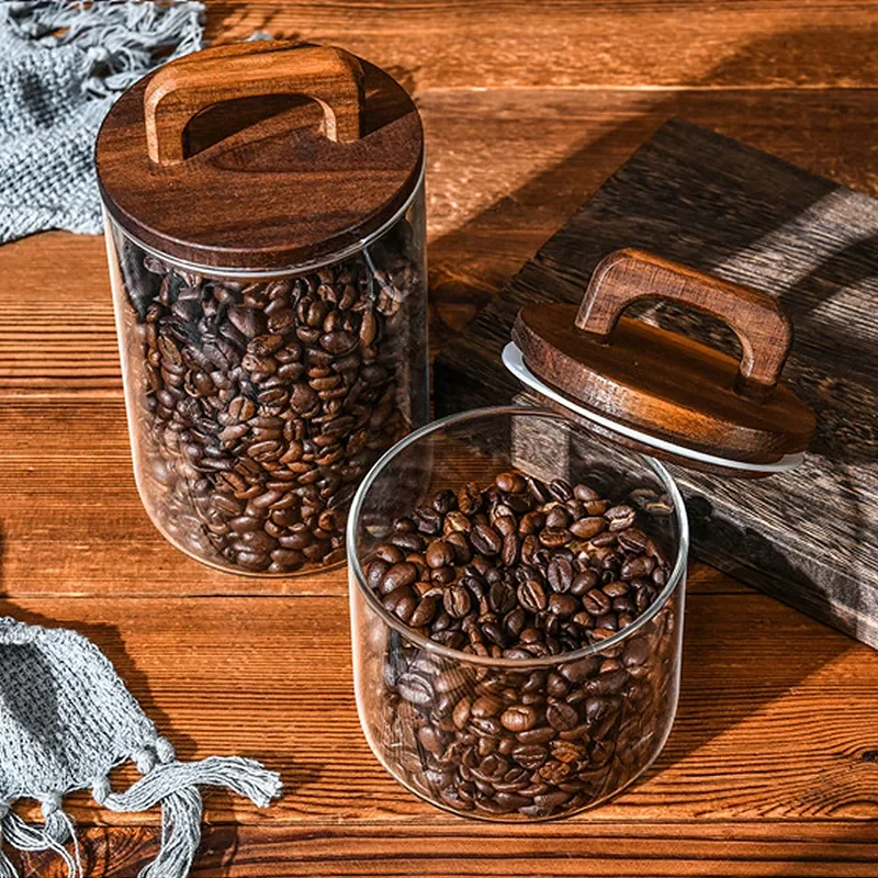 Factory Wholesale High Borosilicate Glass Food Storage Jars Sealed Containers With Handle Acacia Lid For Kitchen Organization
