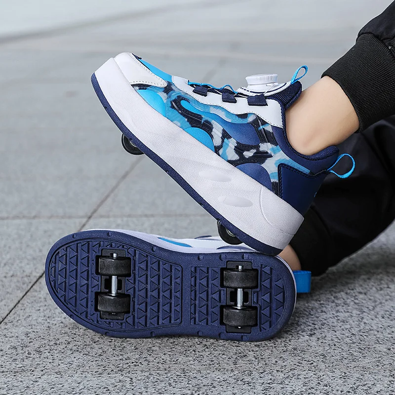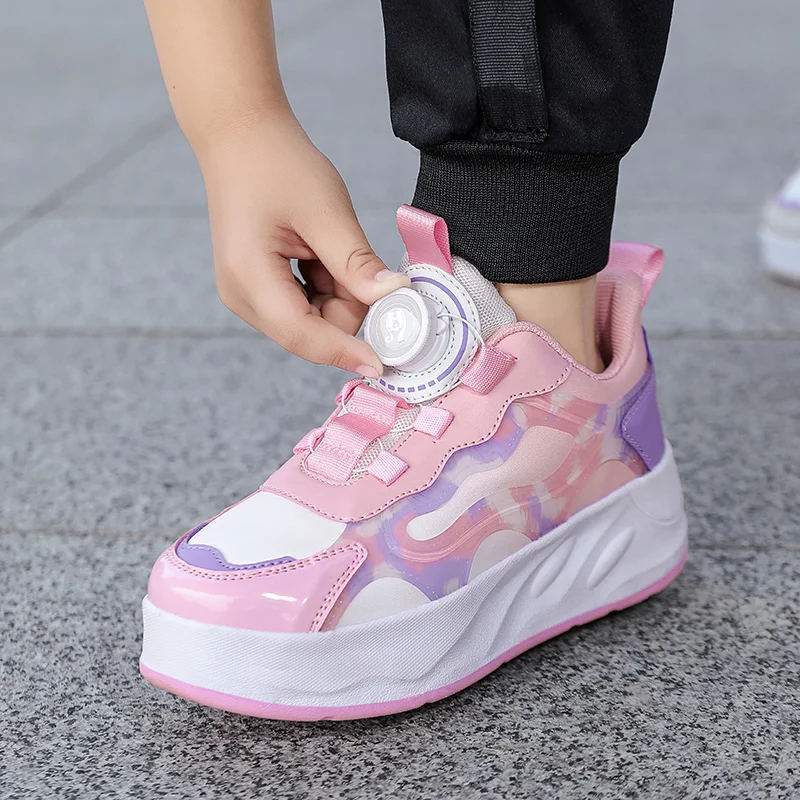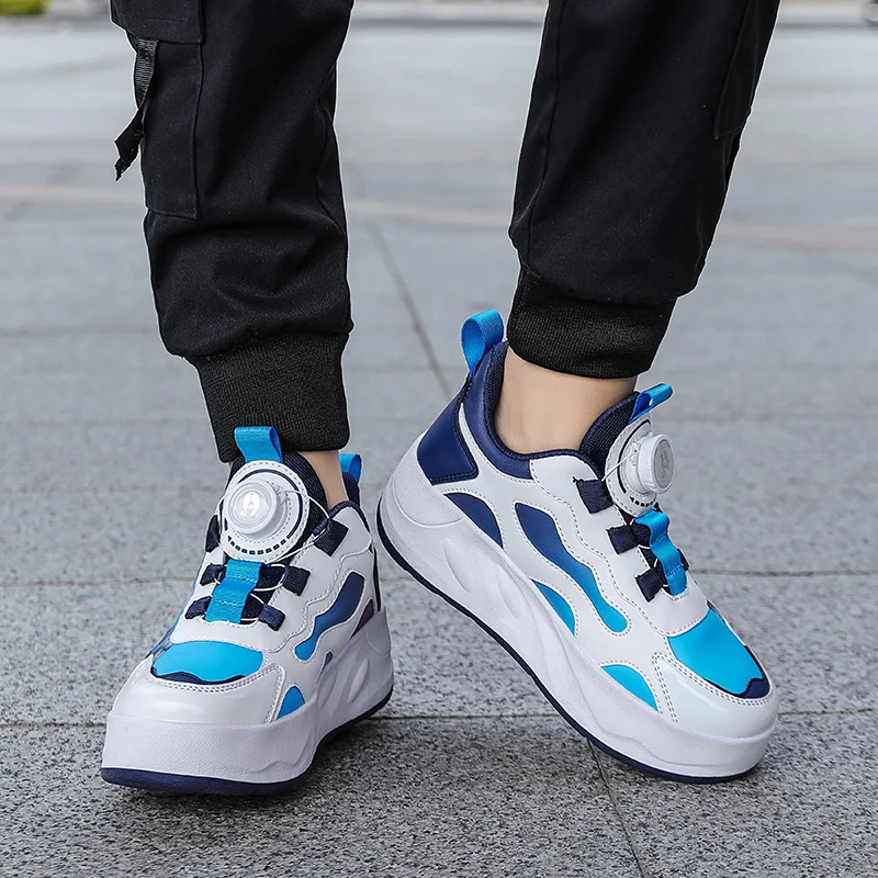 Boys Girls Kids Four Wheels Roller Skating With Walking Shoes Detachable Wheels Anti Slip Sole Shoes For Teenagers Shoes