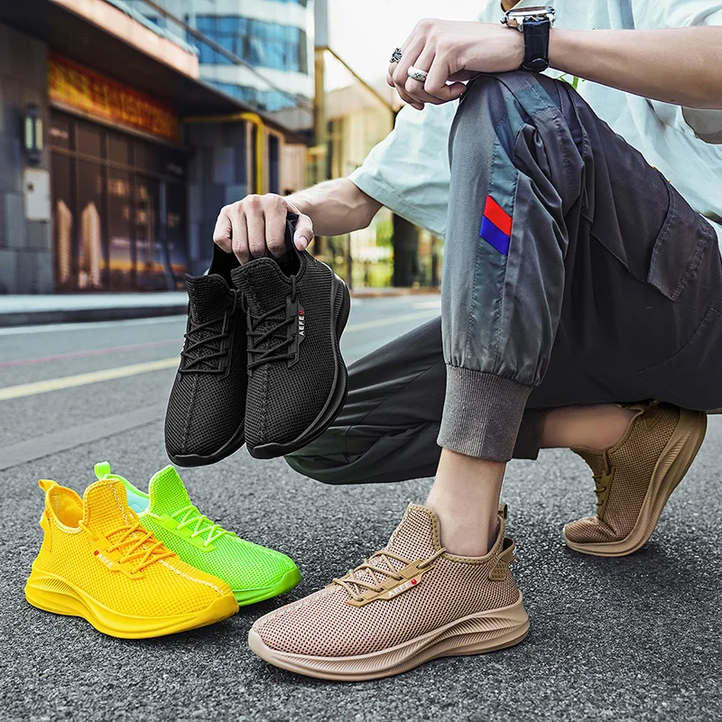 Hot selling high quality men's walking male mesh sports shoes trainers breathable lightweight large size running shoes