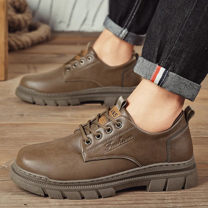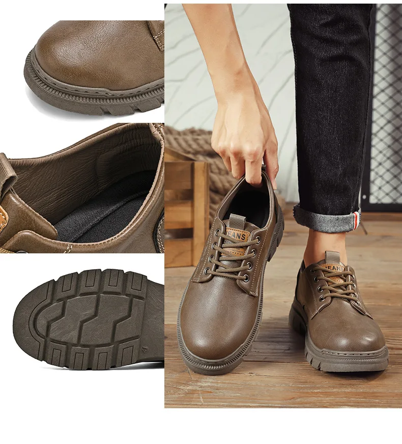 Cross Border Large Size Fashionable Casual Small Leather Sneakers British Style Trendy Low Cut fashion Boots Men'S Shoes