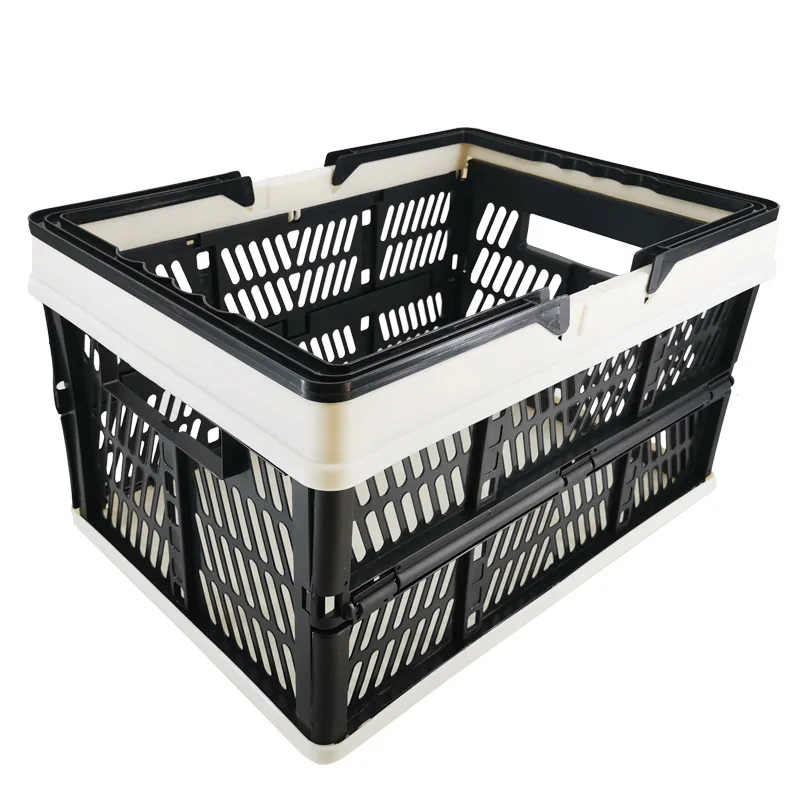 Colorful design easy storage and use Plastic Folding Storage Basket/Collapsible Shopping Storage Basket with handle