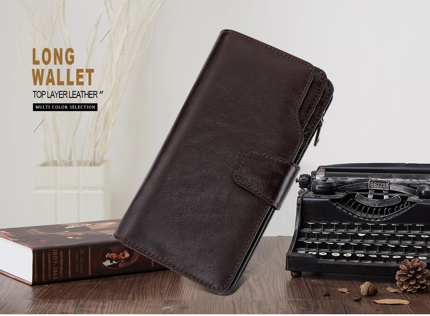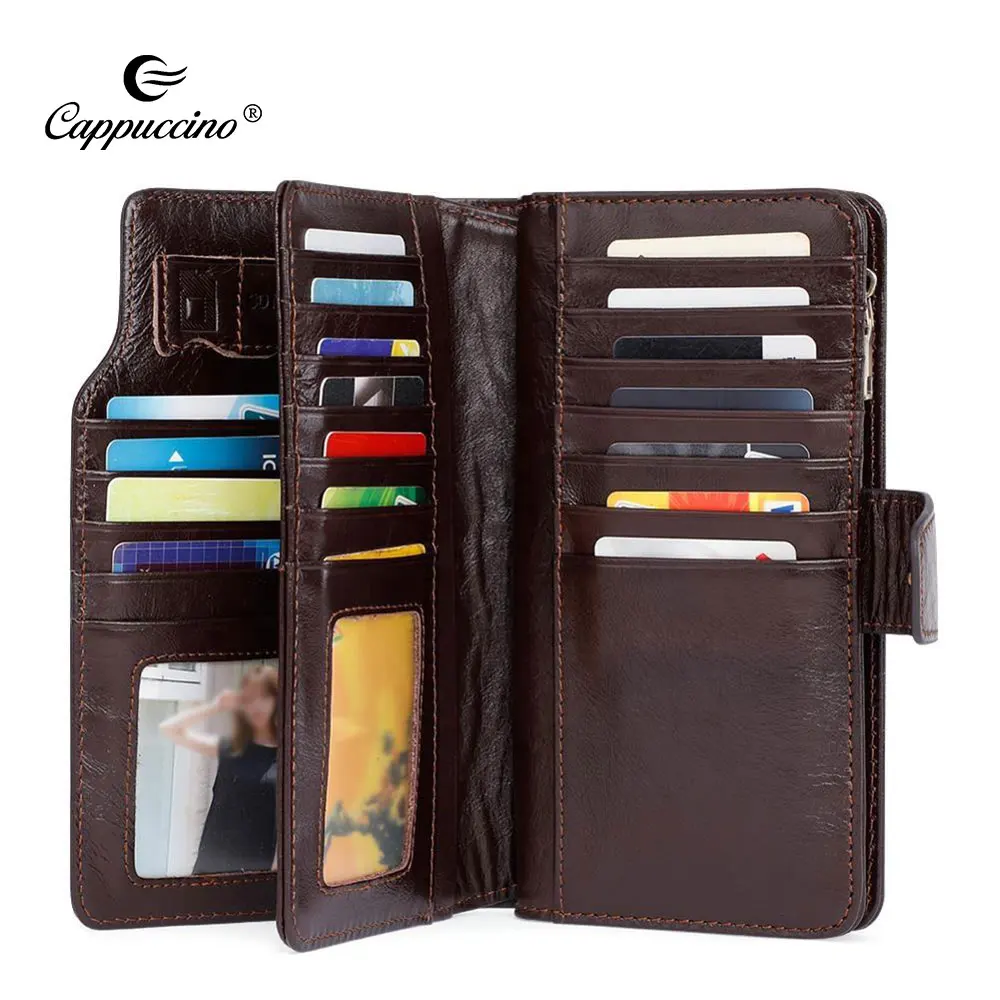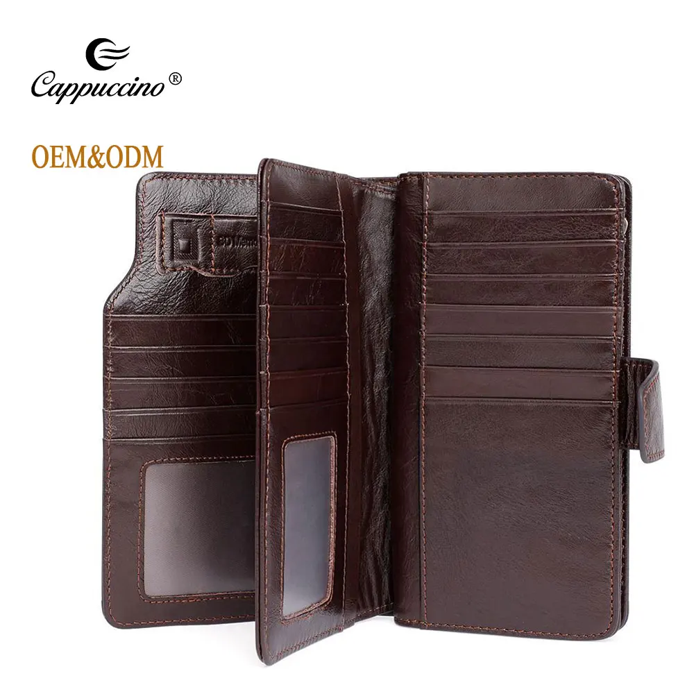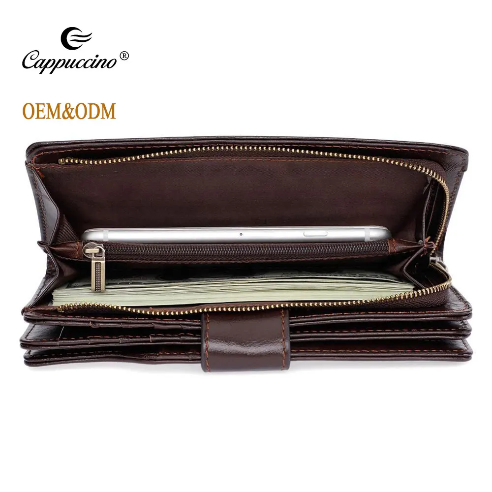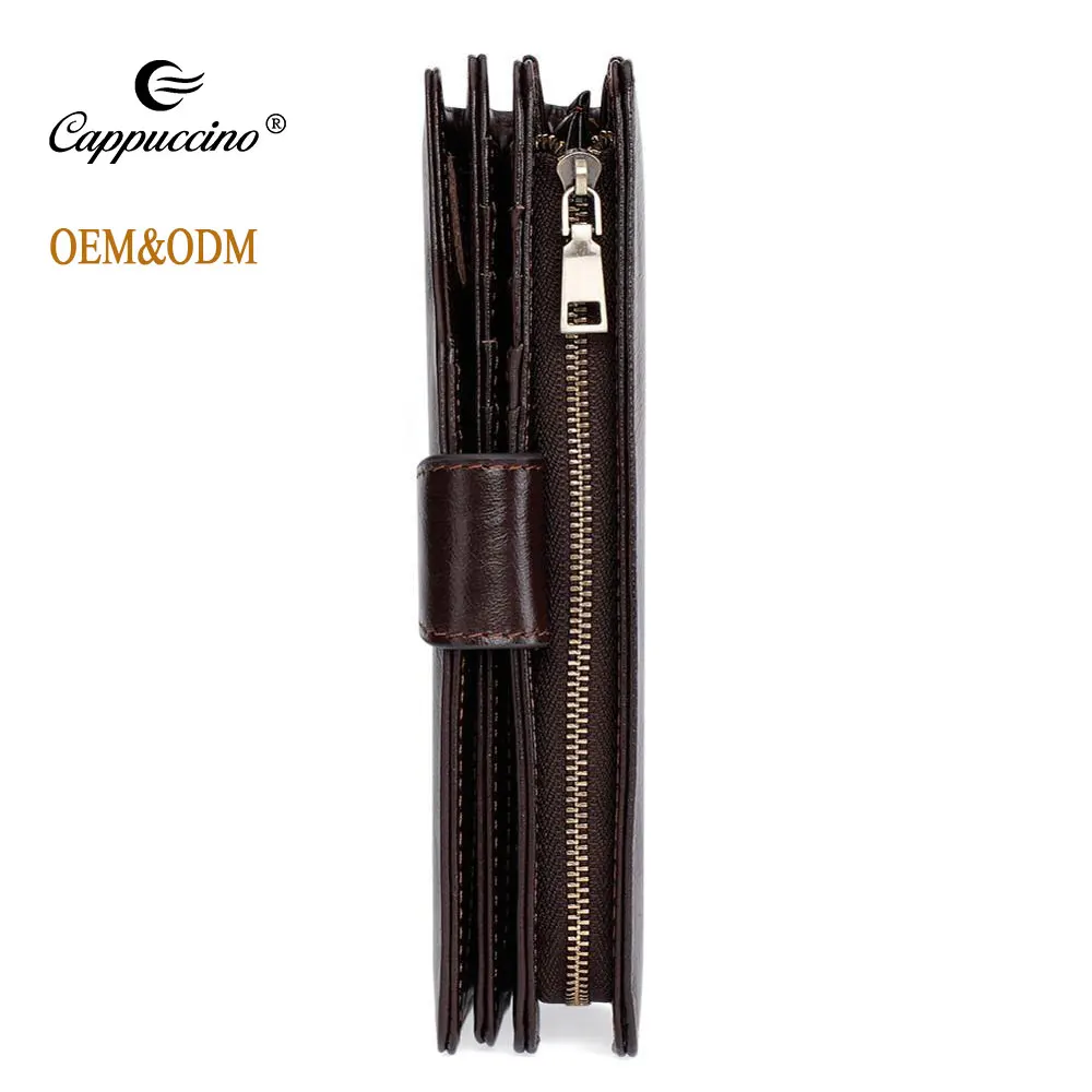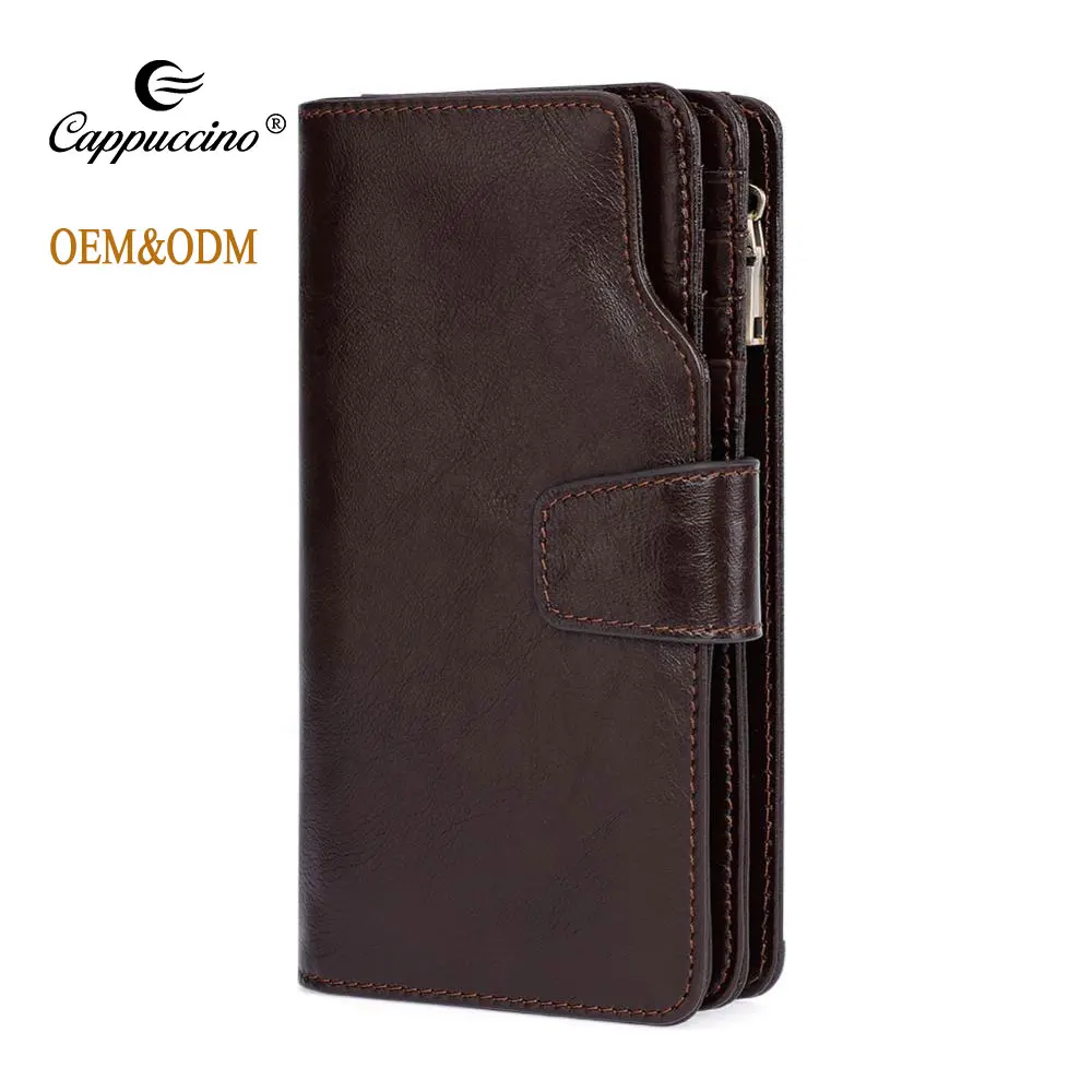 High Quality Vintage First Layer Cow Leather Long Size Wallet Men Zipper Genuine Leather Wallet For Men Wholesale