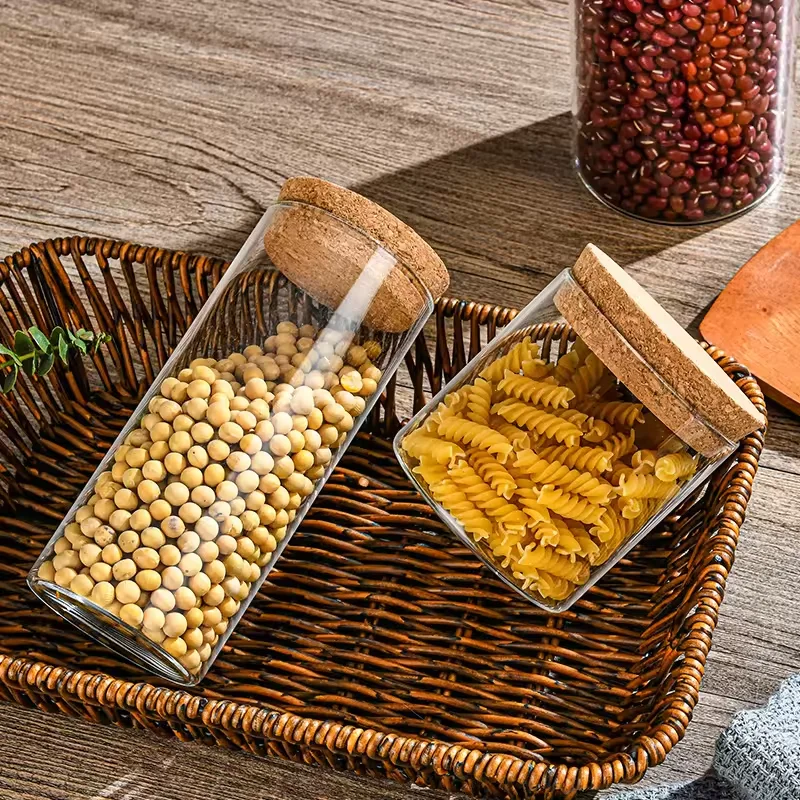 Wholesale kitchen food airtight glass spice storage jar with Cork lid mini round shape jam jelly glass storage container
