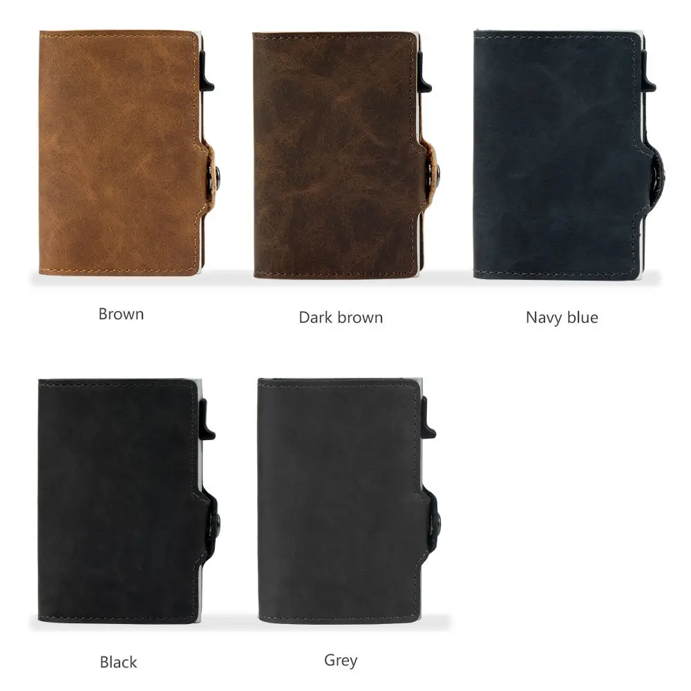 Side Push Button Mens RFID Blocking Leather Wallet Minimalist Aluminum Credit Card Holder crazy horse pu card holder