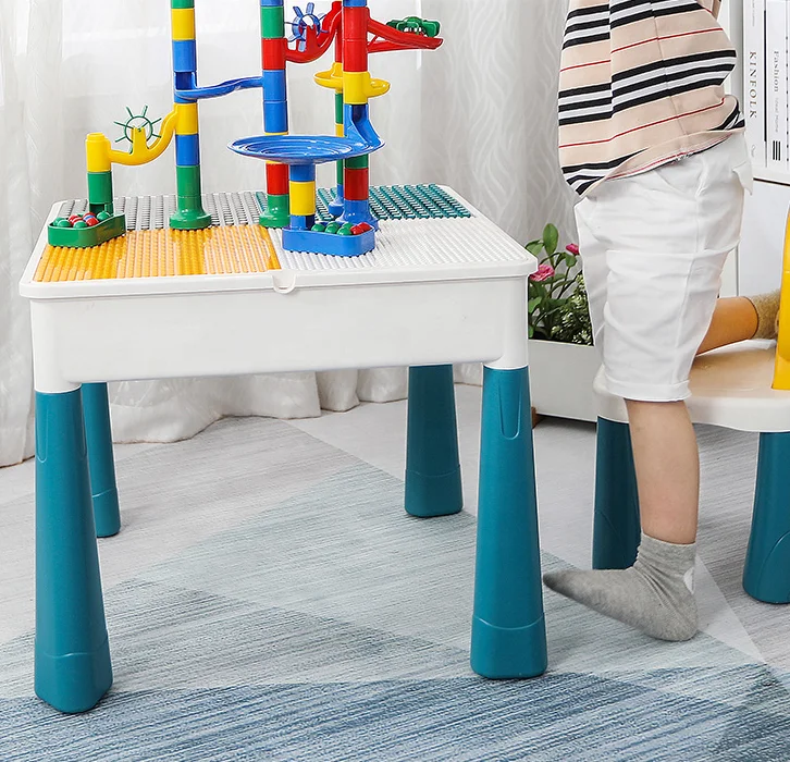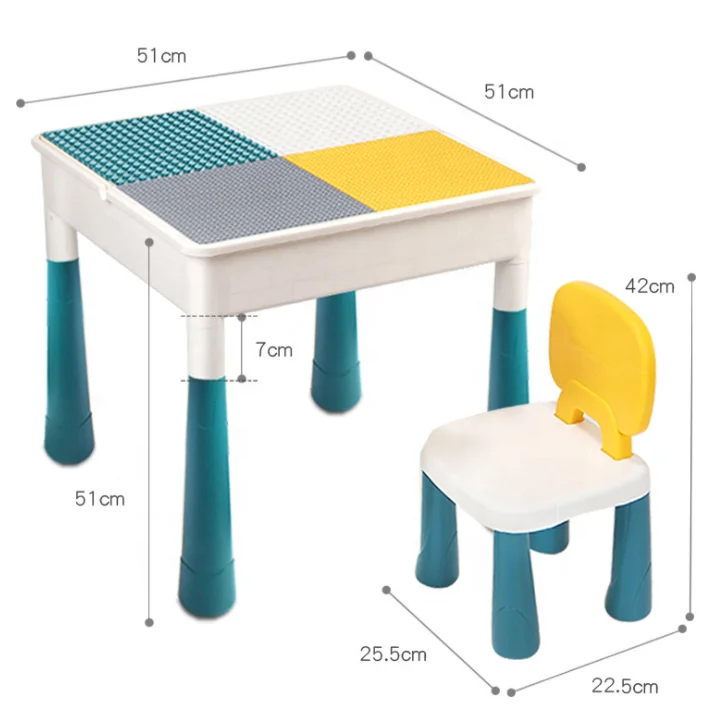 Children 2 in 1 building block table and chair set multifunctional Foldable toy learning gaming writing studying table chair