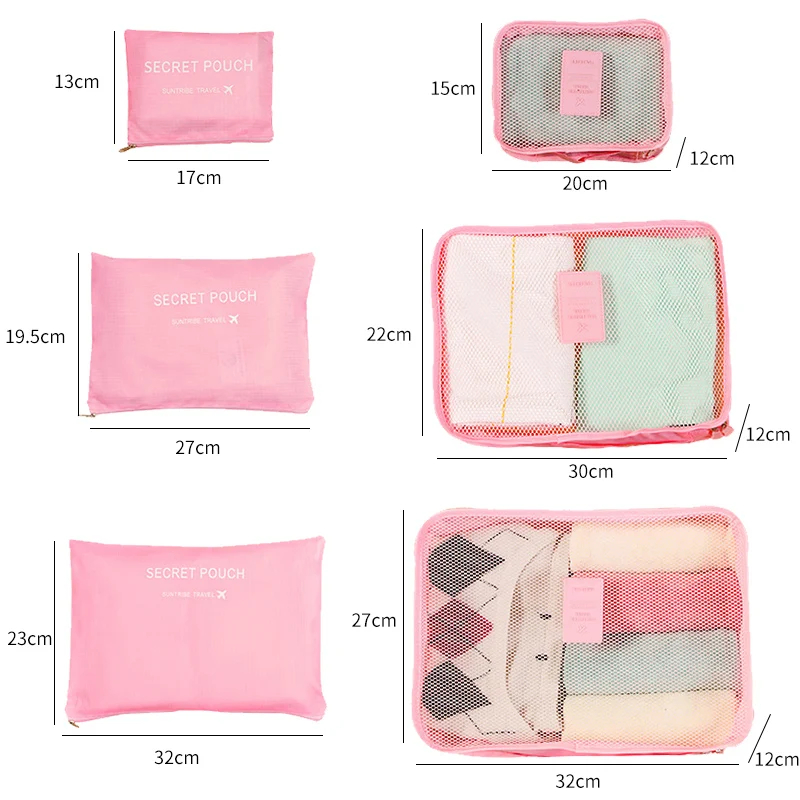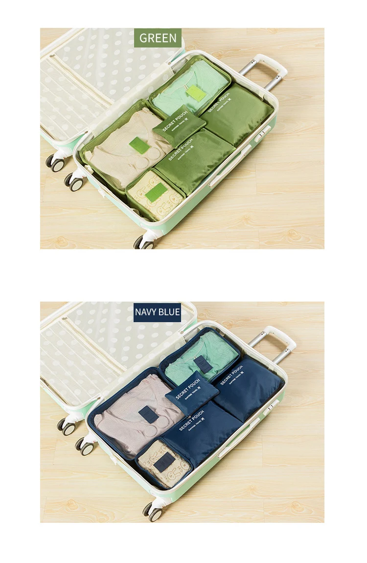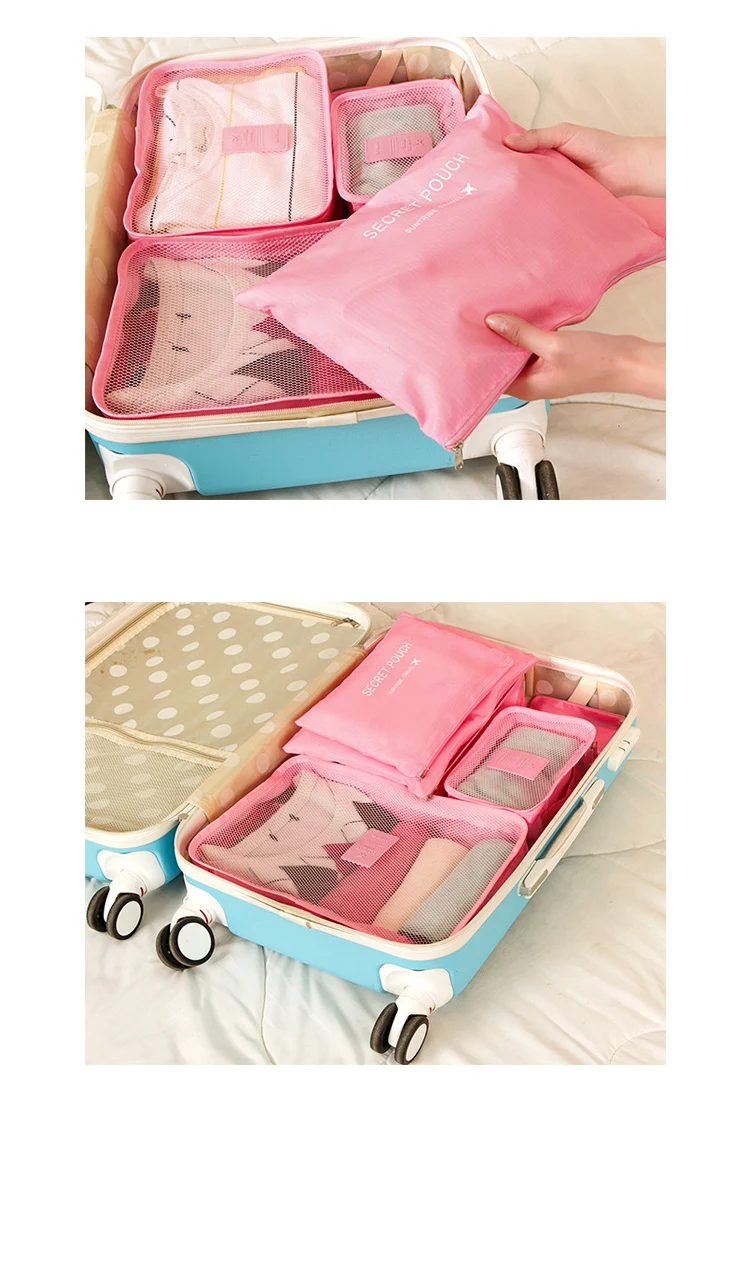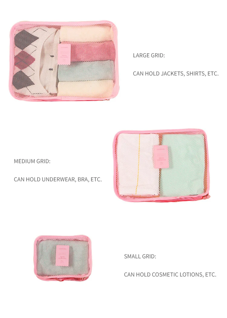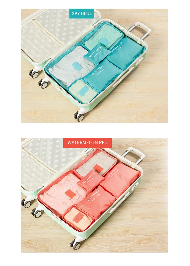 6-Piece Custom Large Multifunction Outdoor Travel Storage Bag Including Shoe and Clothes Organizer Packing Cube Luggage Set