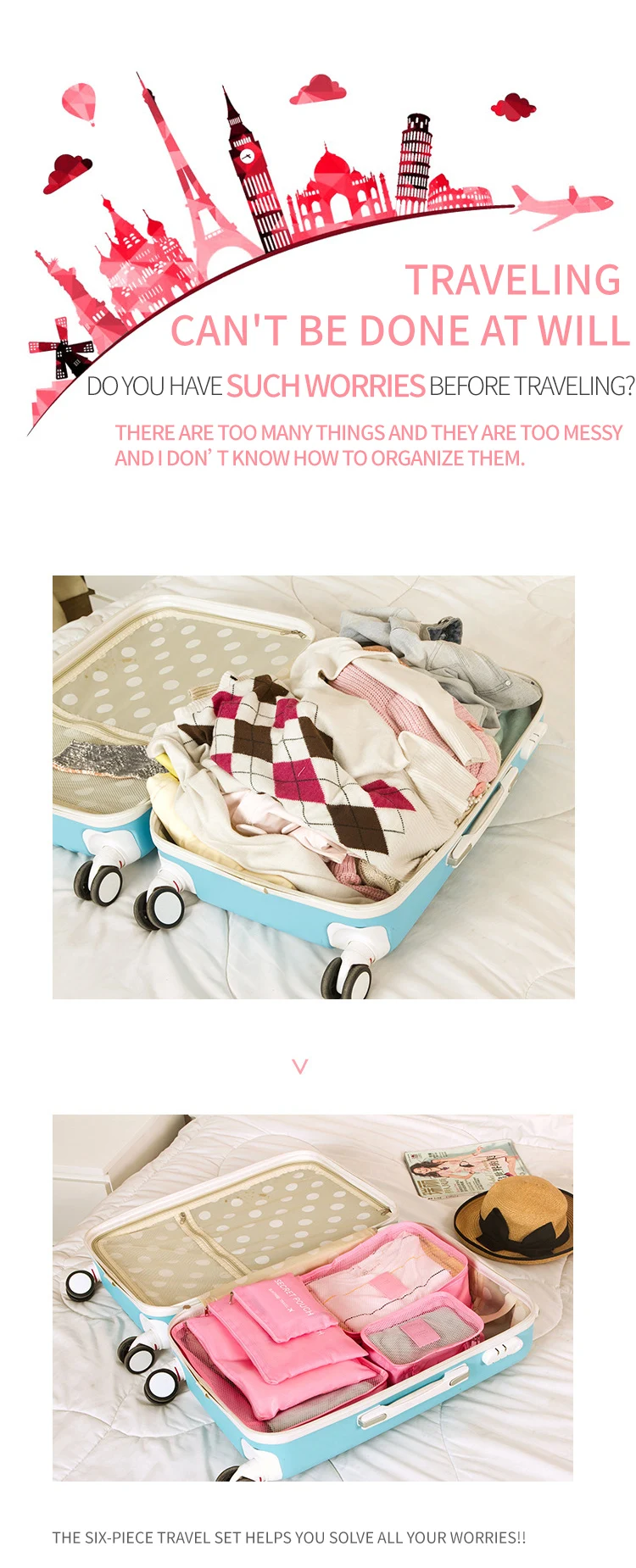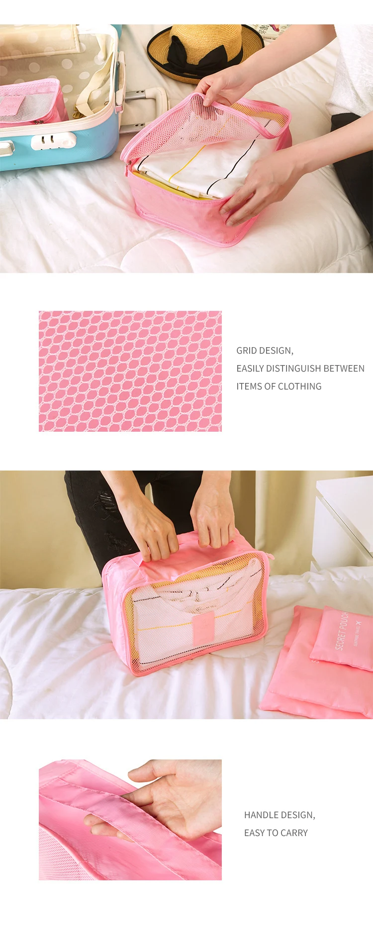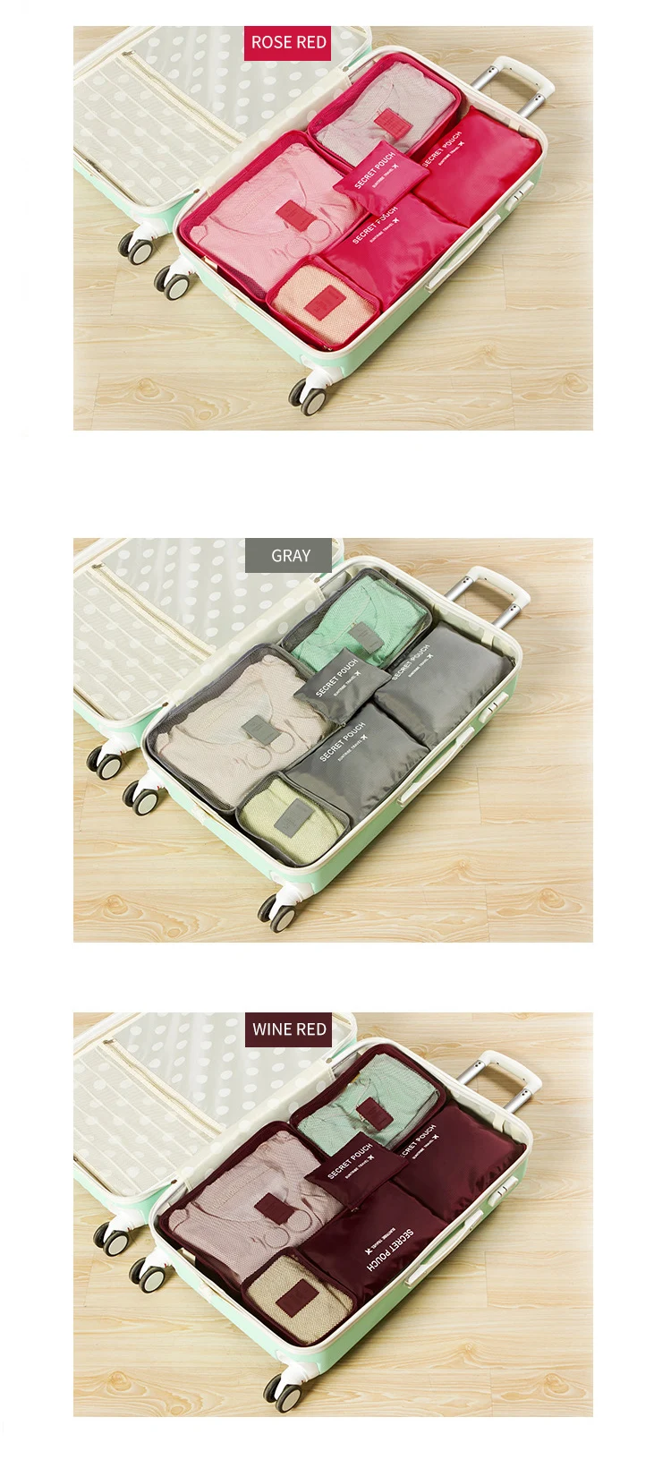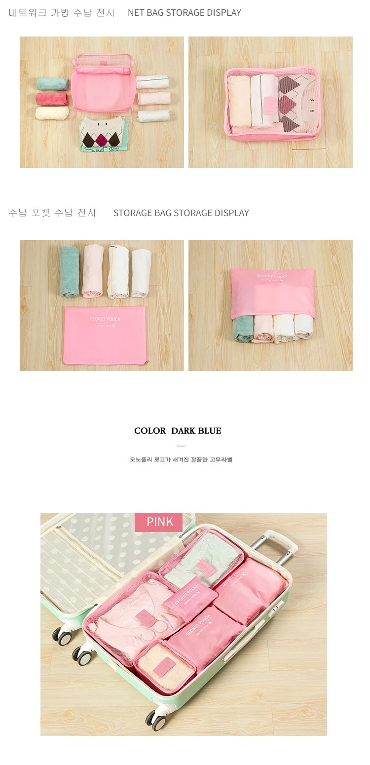 6-Piece Custom Large Multifunction Outdoor Travel Storage Bag Including Shoe and Clothes Organizer Packing Cube Luggage Set