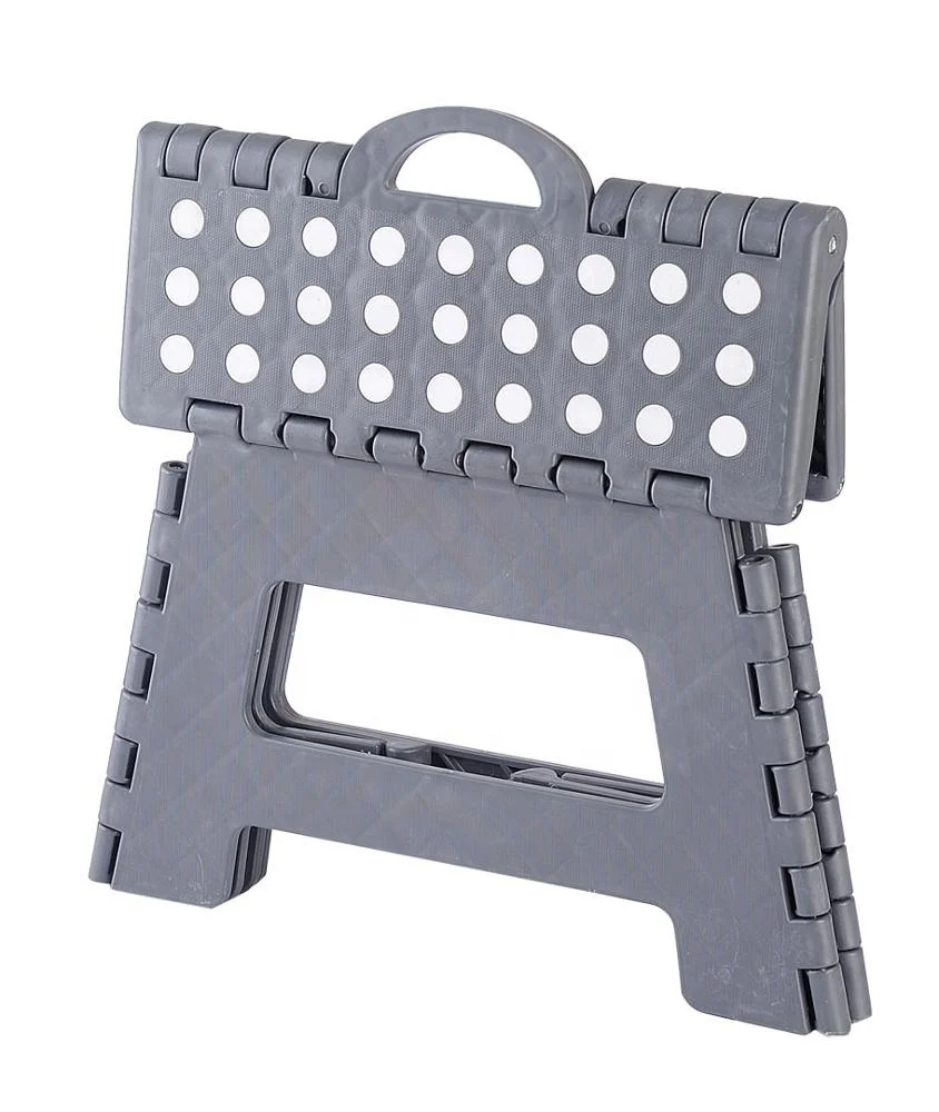 - PORTABLE-foldable step stool is the definition of portable. Folds flat for easy storage. When folded, the built in plastic handle is exposed allows for easy transfer and portability. Bring anywhere you need a boost or seat!