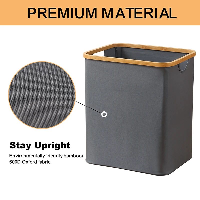 Large Capacity Foldable Oxford Fabric and Bamboo Laundry Basket Clothing Laundry Hampers