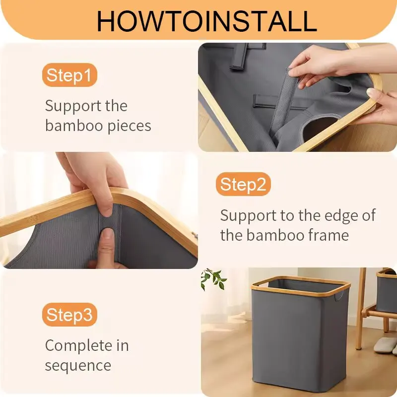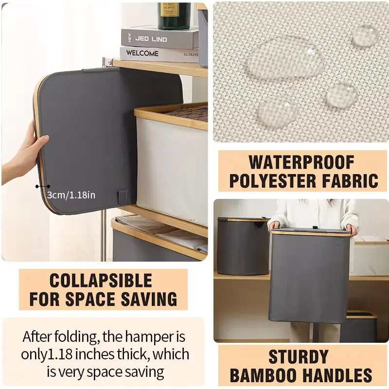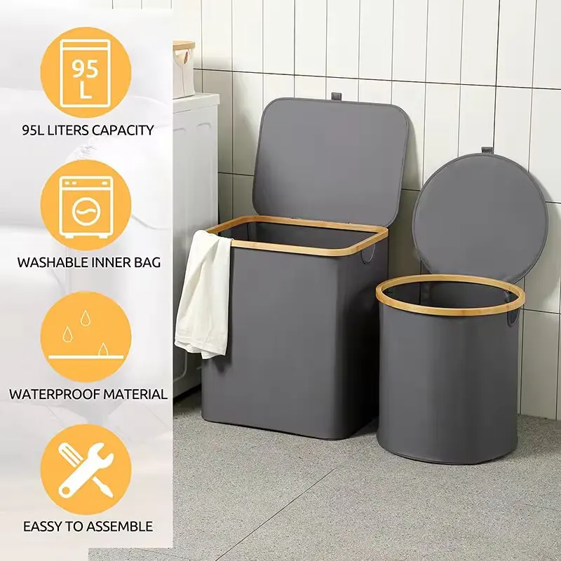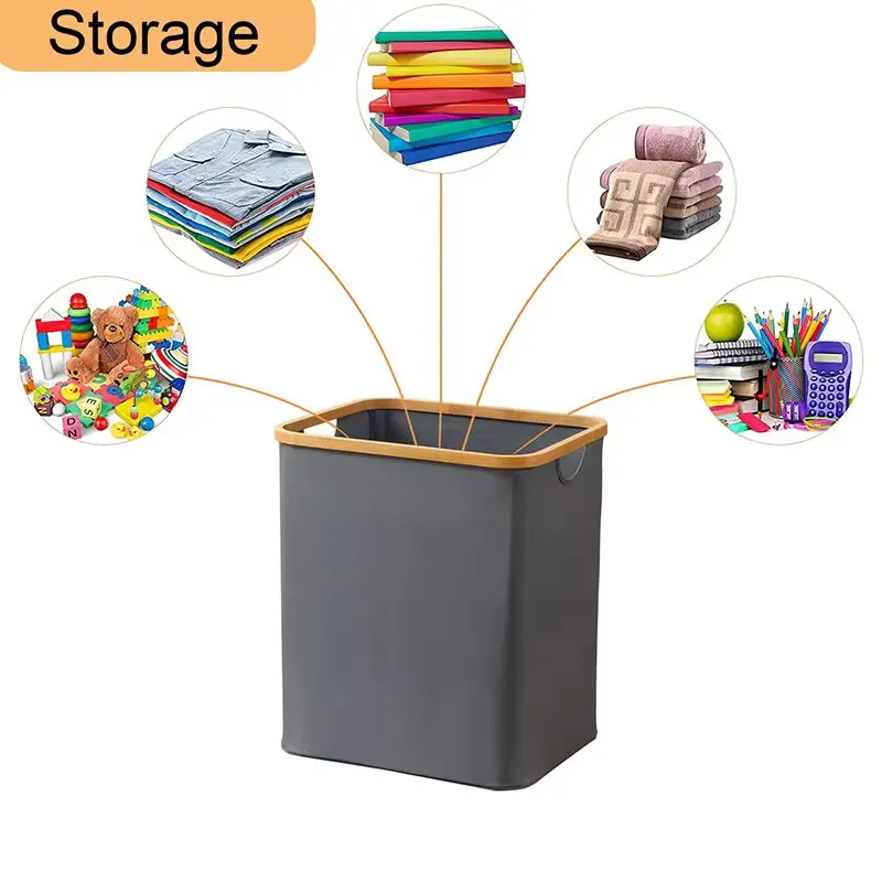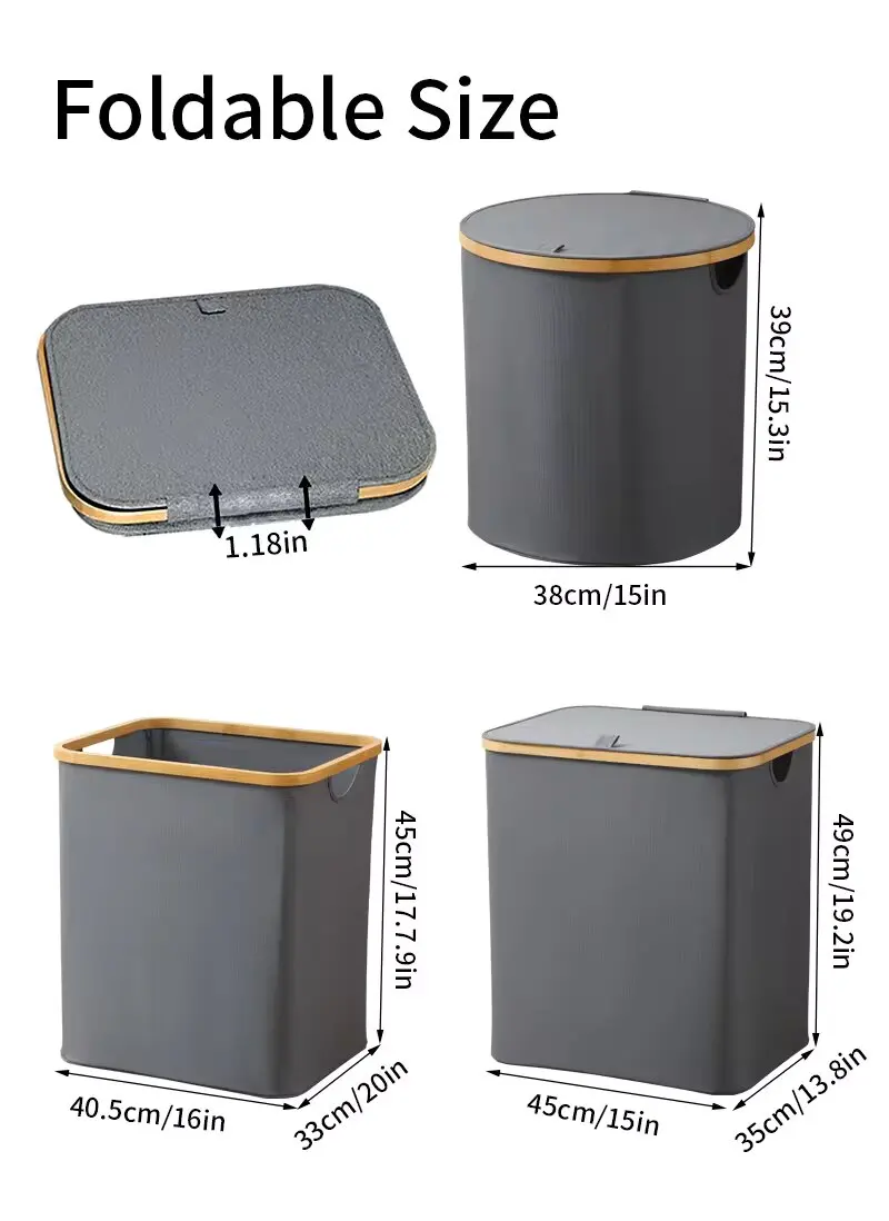 Dirty Clothes Storage Basket Bamboo Laundry Hamper Foldable Laundry Basket with Lid