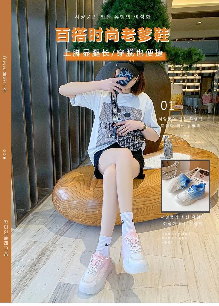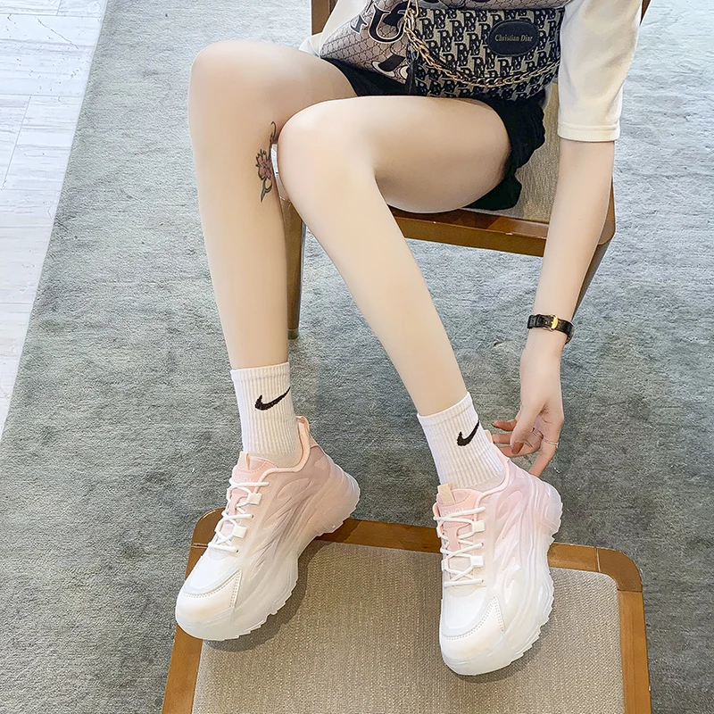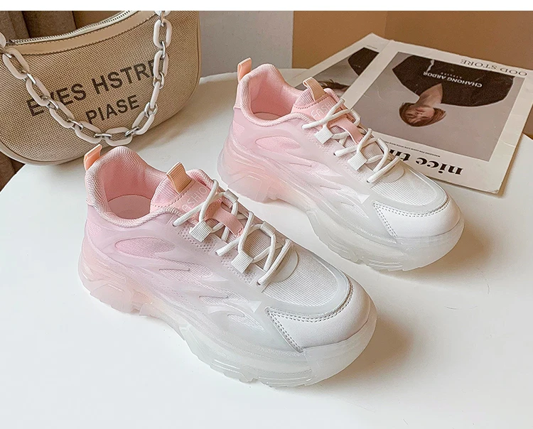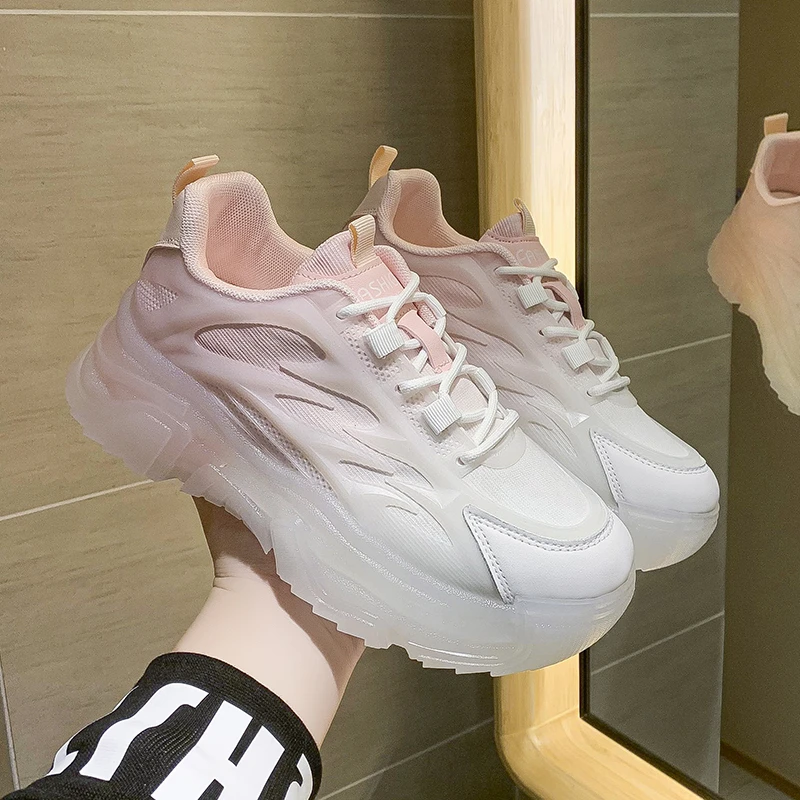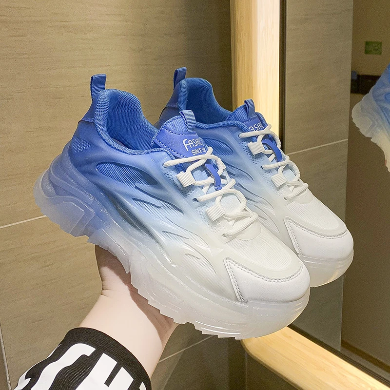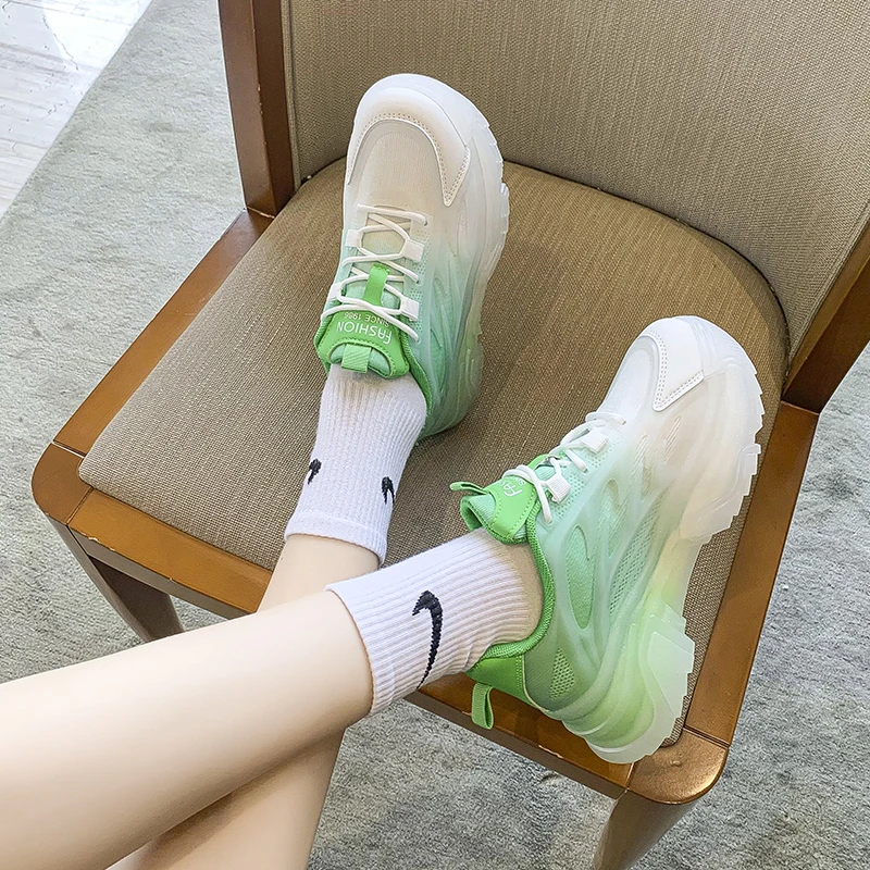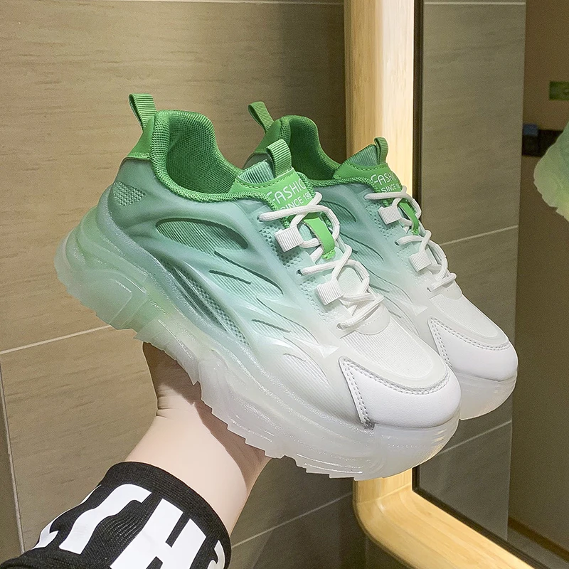 Green Pink Blue Dad Chunky Fashion Sneakers Casual Female Colorful Shoes Woman High Platform Rhinestone Heel Jelly Sole Sneakers
