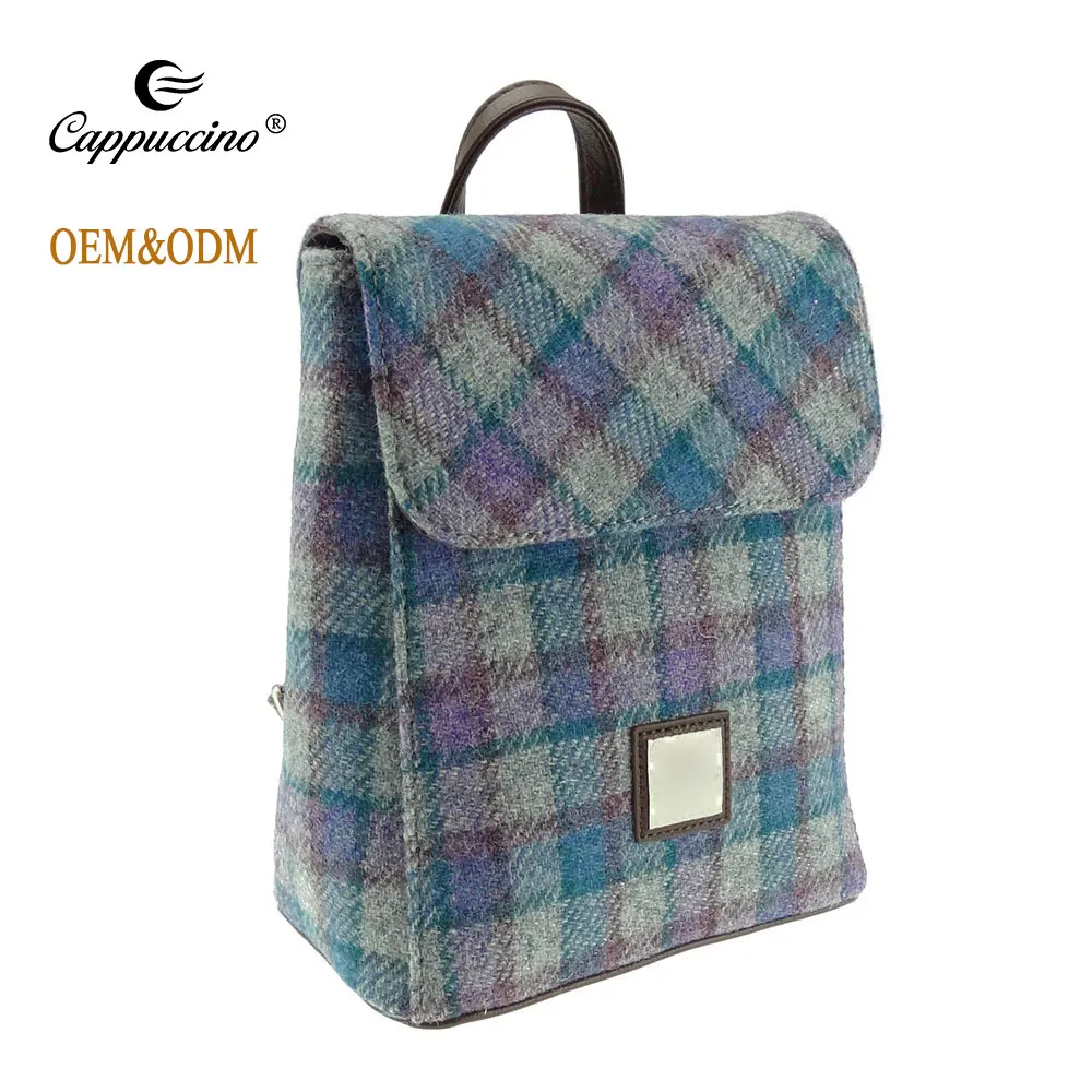 Wholesale customized logo travel man backpack tartan luxury backpack Plaid Rucksack women