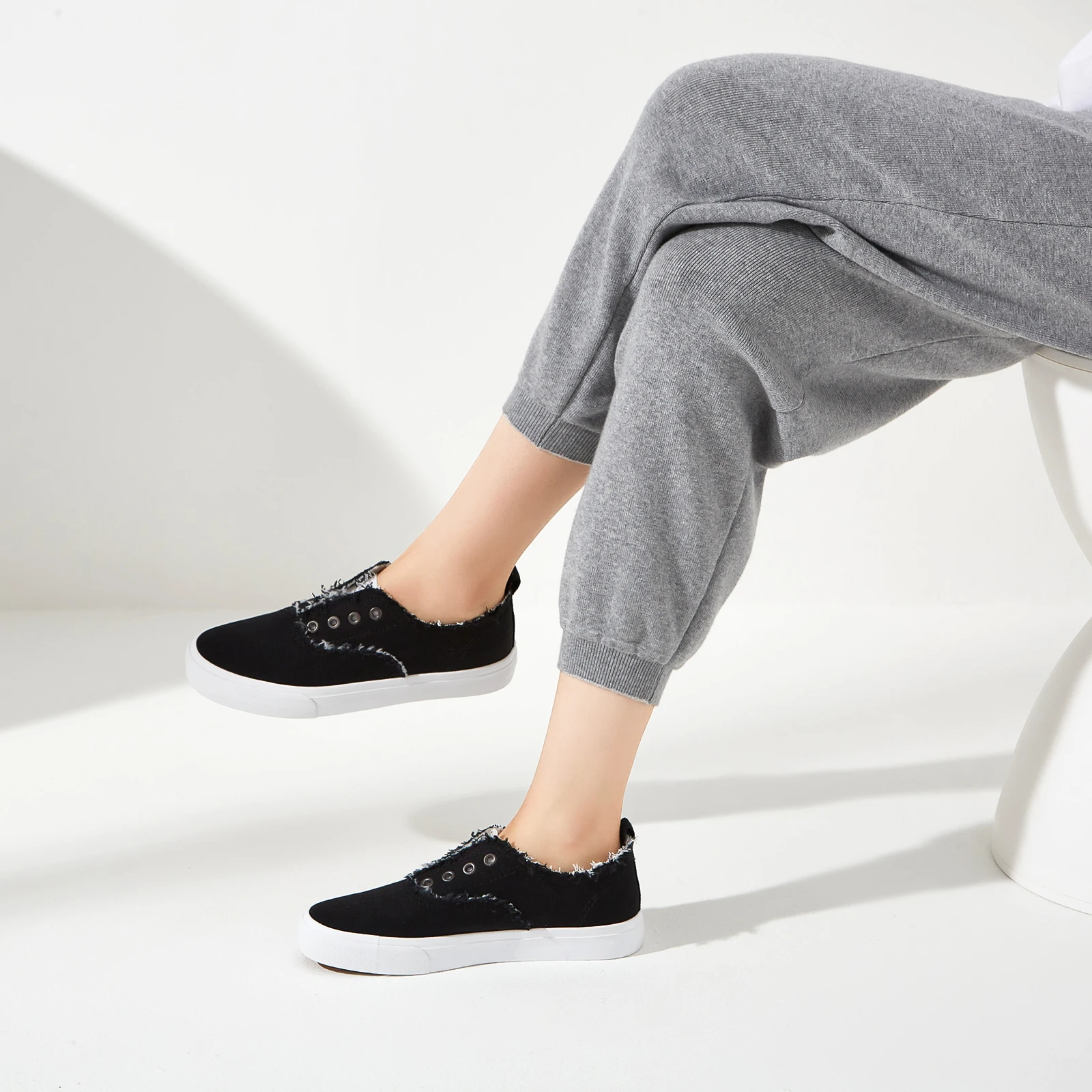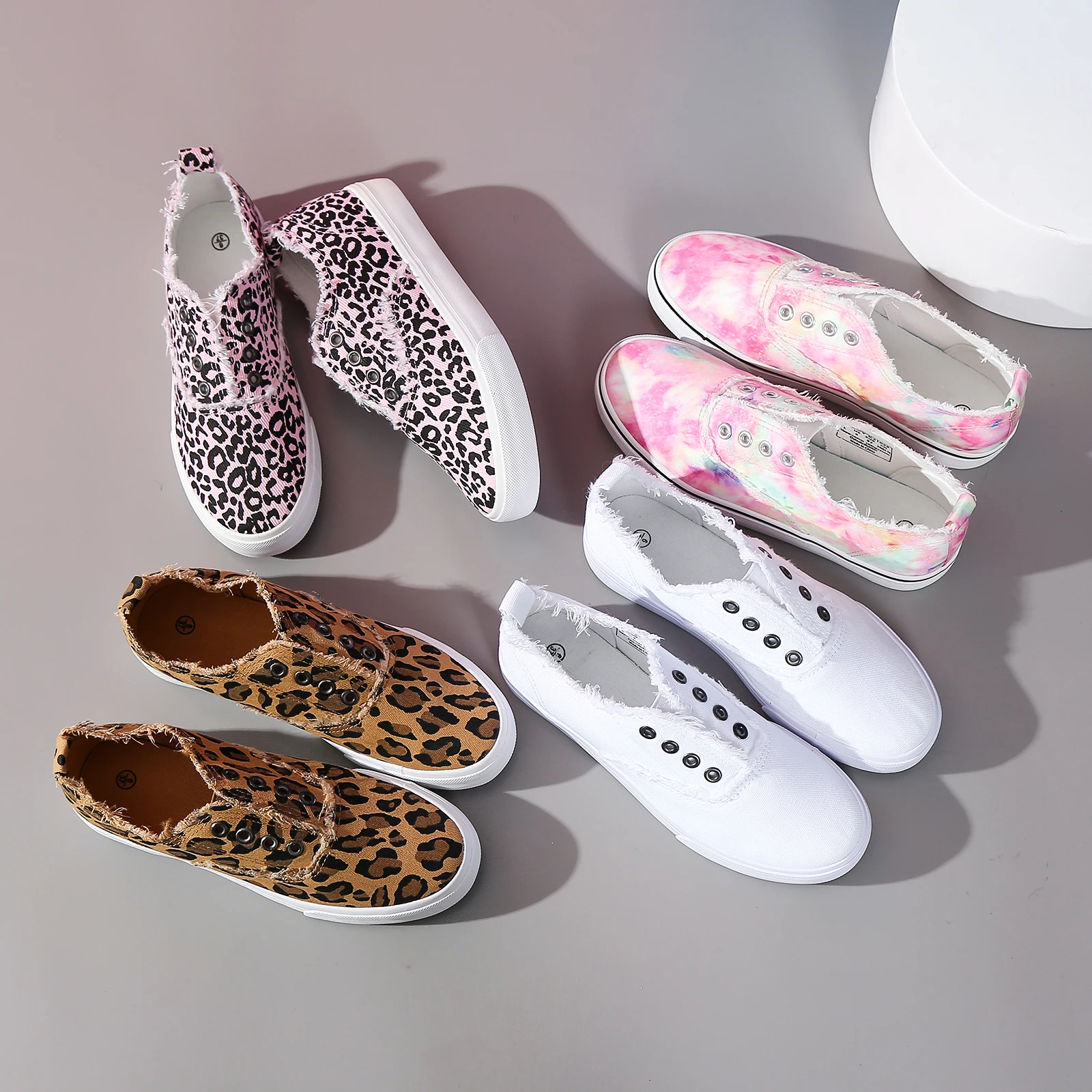 Hot Sale Casual Low Top No Lace Lazy Canvas Shoes Slip On Random Fluff Decoration Canvas Shoes For Women