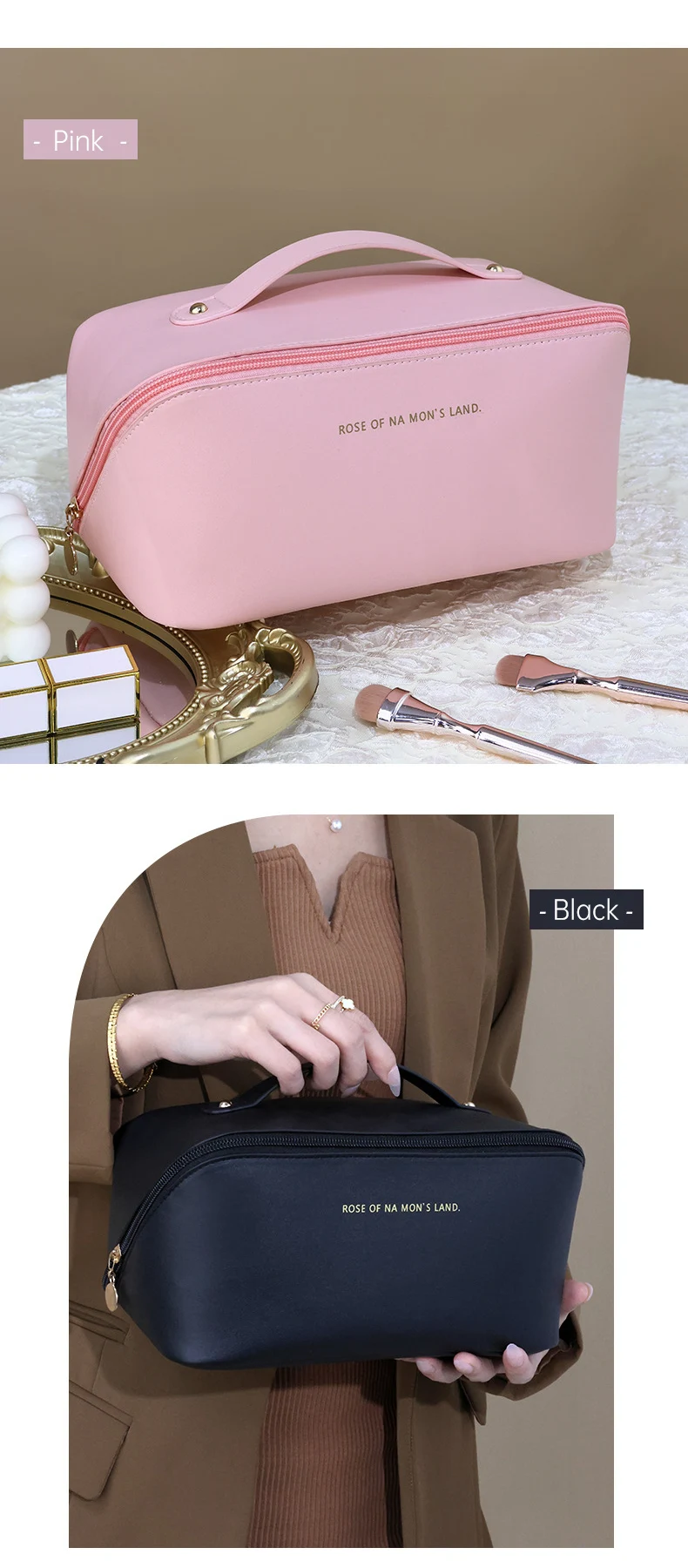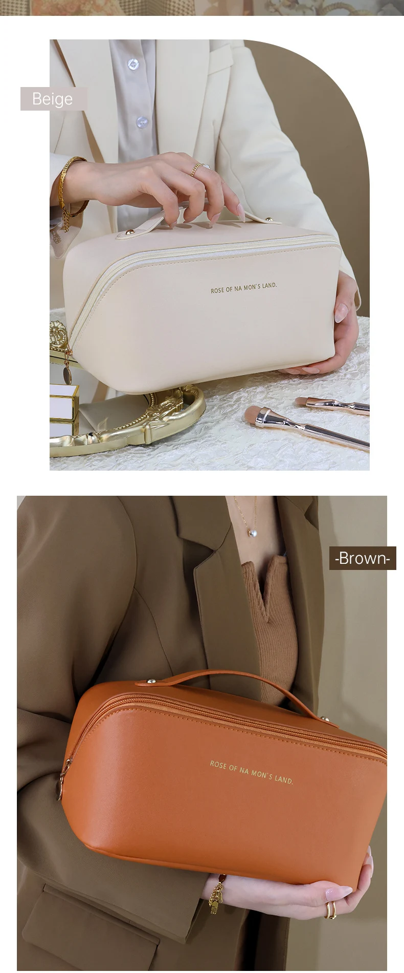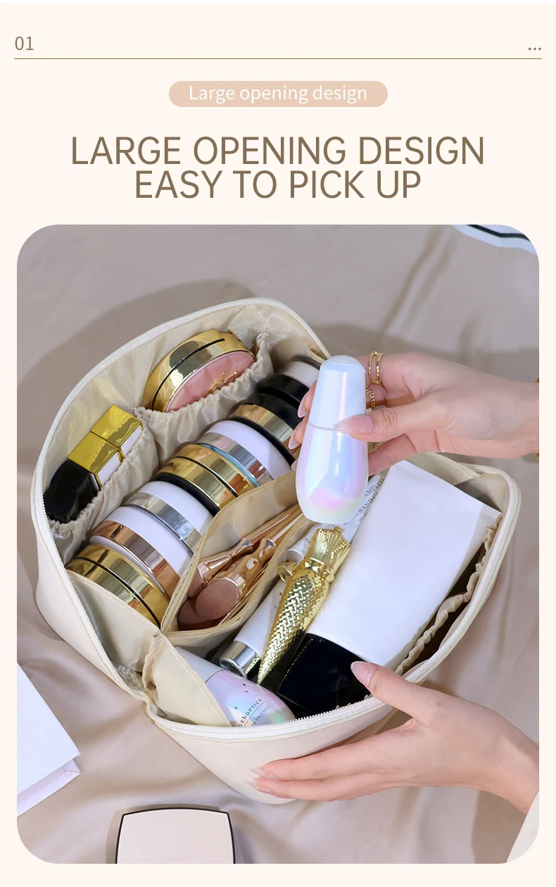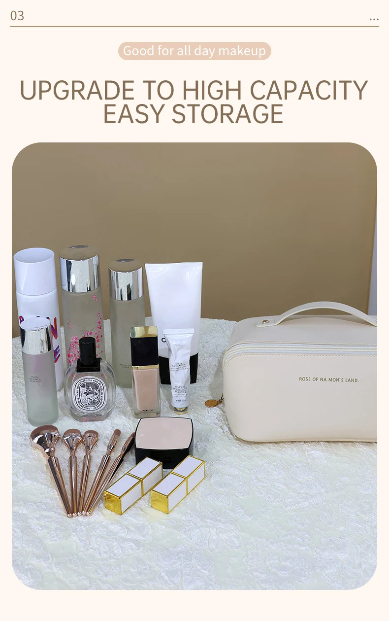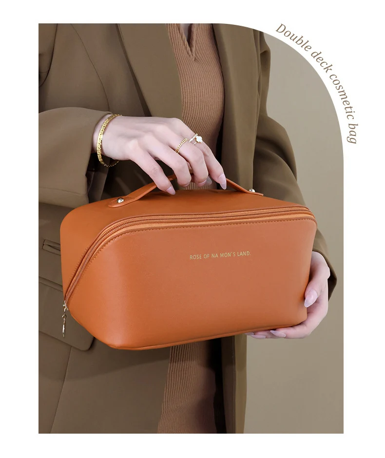 Makeup Storage Organizer Bag PU Leather Waterproof Travel Beach Make Up Cosmetic Bag for Women