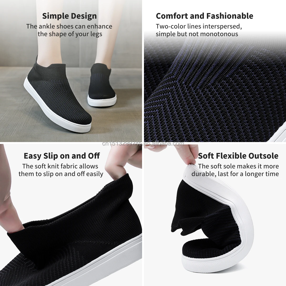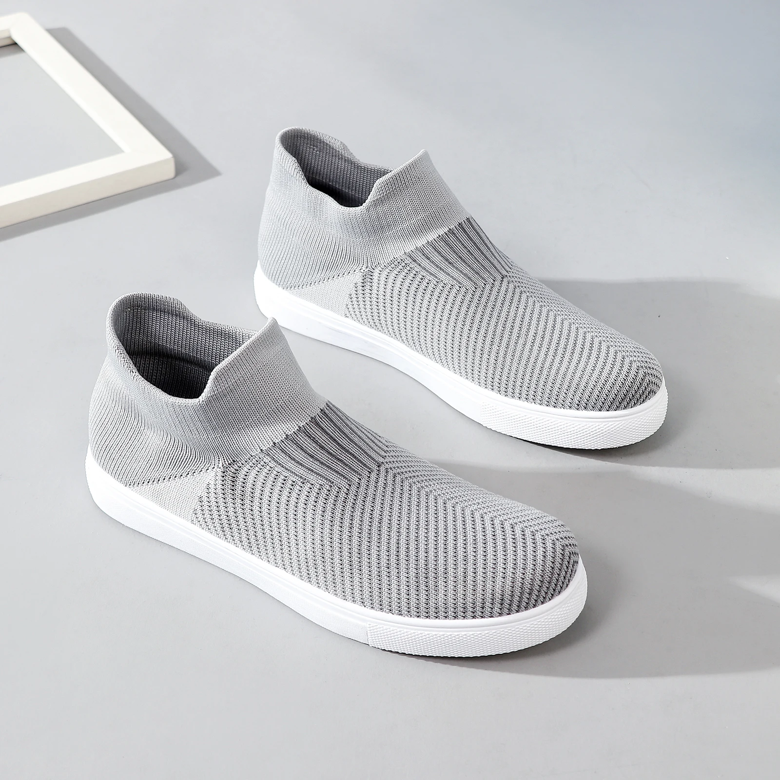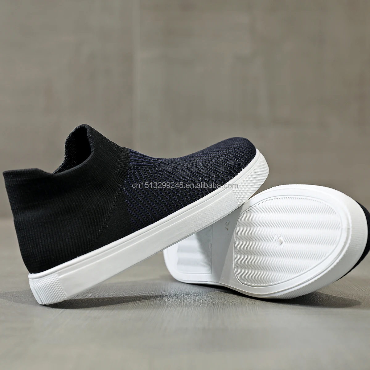 Wholesale Flexible Durable Upper Slip On Knit Custom Logo Sneakers Non-Slip Sole Walking Style Shoes Knit Sneakers