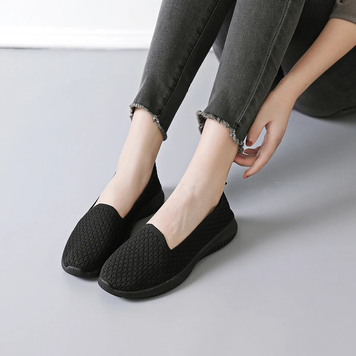 Fashionable Custom Logo Women Ladies Mesh White Flat Shoes Casual Ultra-Light Soft Slip On Flat Shoes