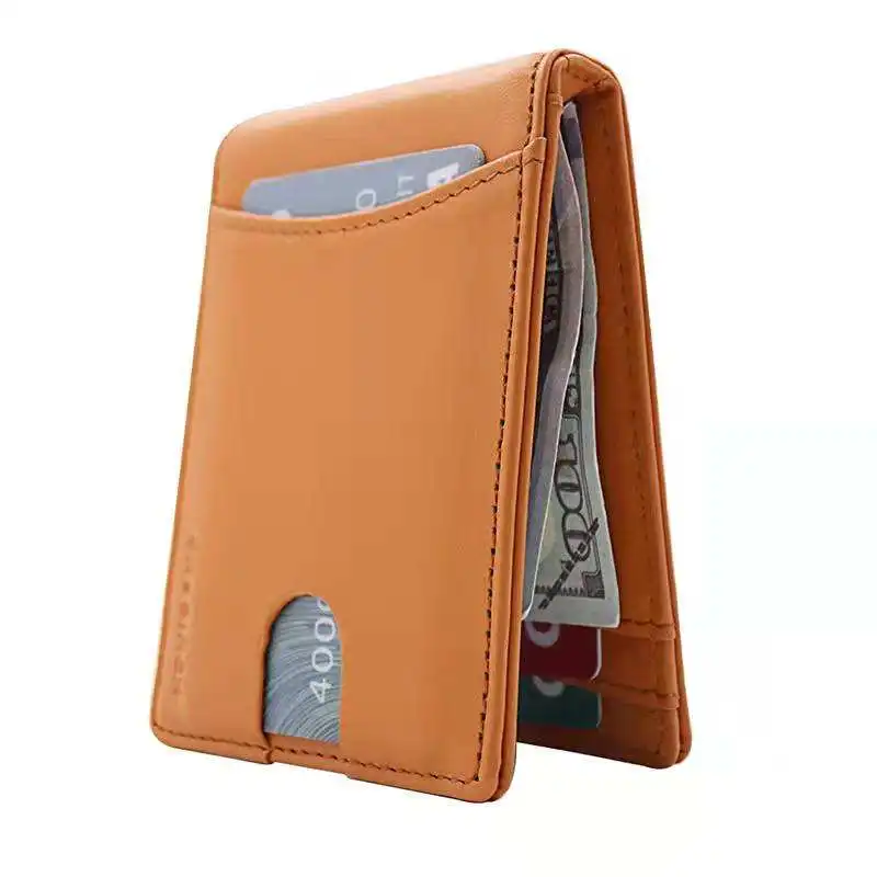 *Style | Slim Minimalist Thin men bifold genuine Leather Money Clip Wallets for Men |