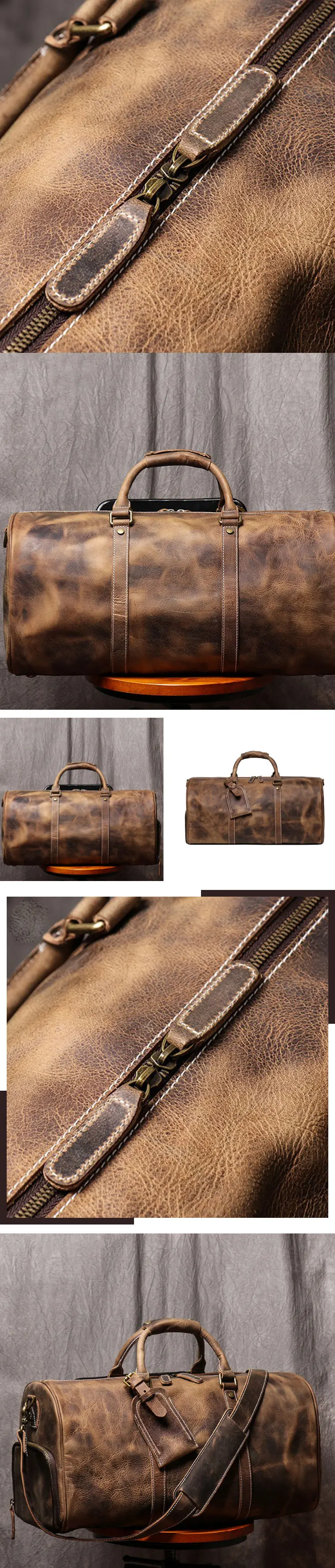 Leather Duffel Bag Travel Weekender Overnight Gym Sports Luggage Duffle Bags For Men