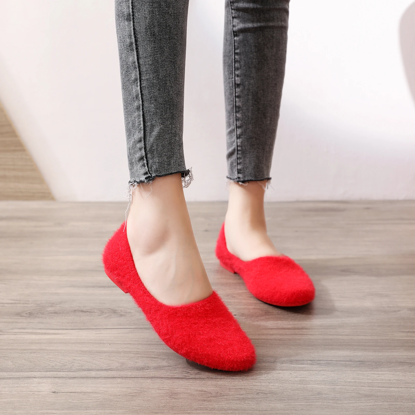 NR factory makes wholesale customizable fluffy flats for women's shoes New flats