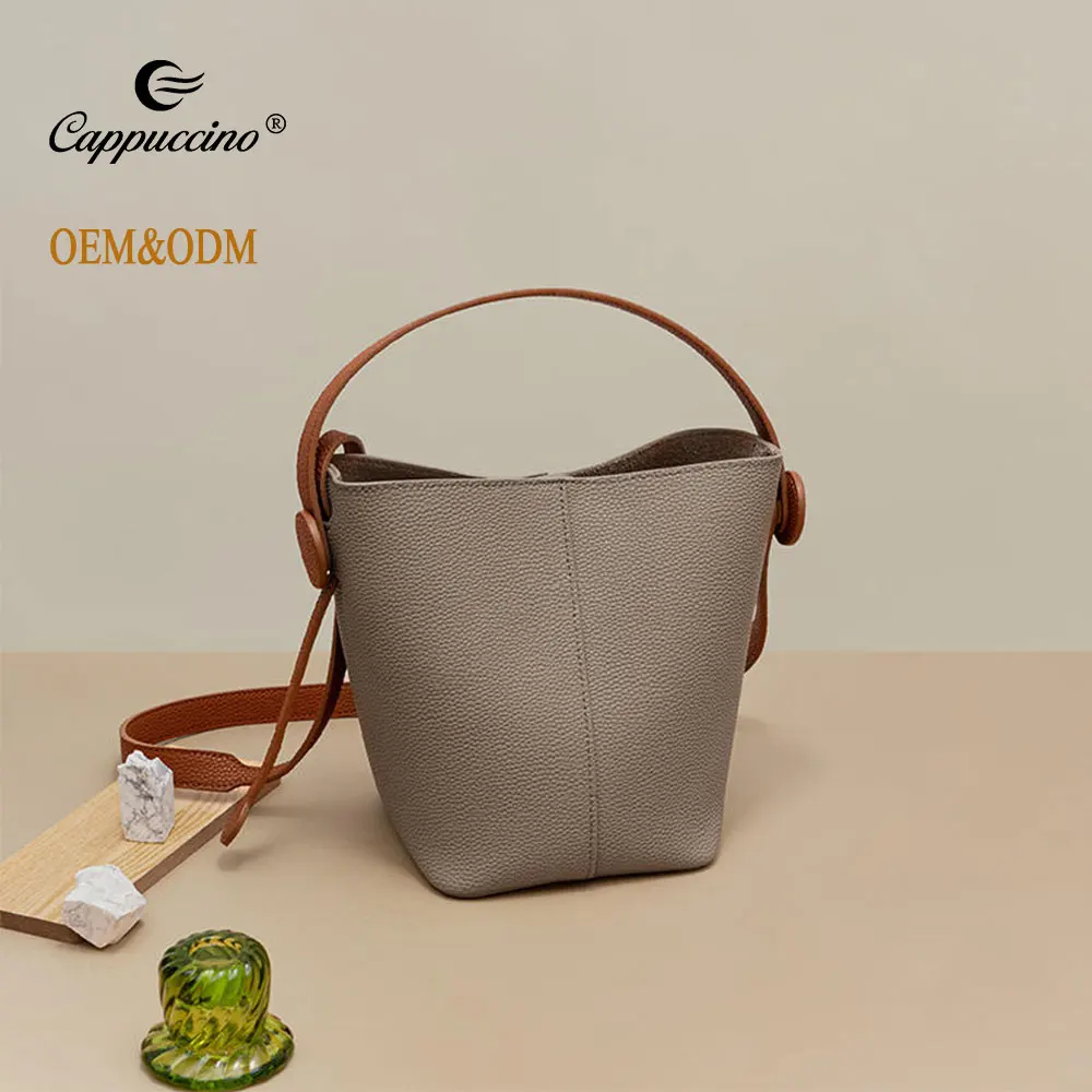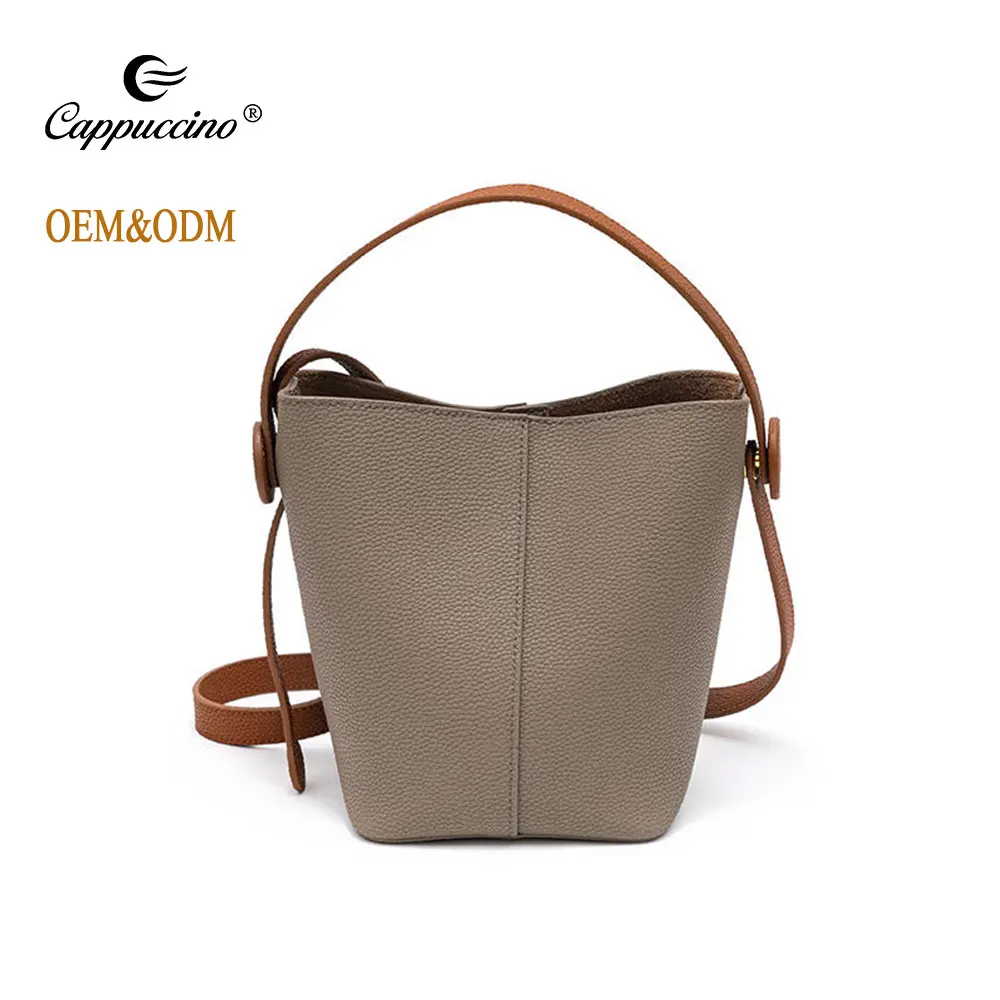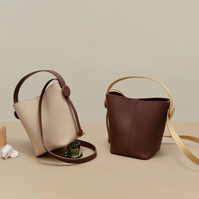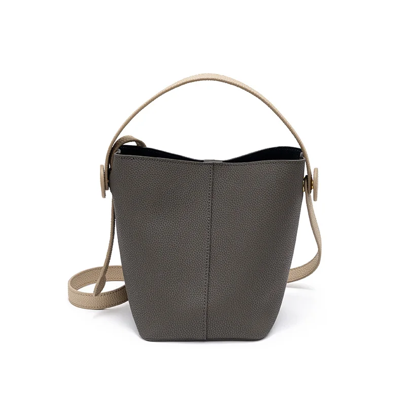 vintage large bosol bucket genuine leather soild color soft nice quality upper cowhide retro women handbags