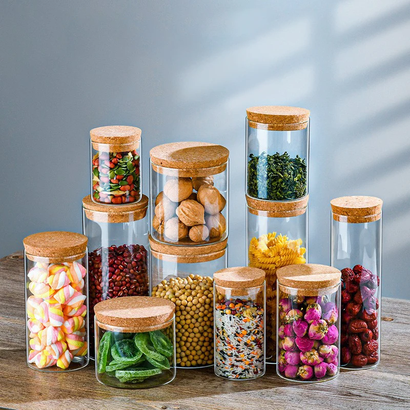 New Arrivals Glass Food Storage Borosilicate Storage Jar honey glass jar with Lid Airtight Bamboo Wooden Lid for Cereal