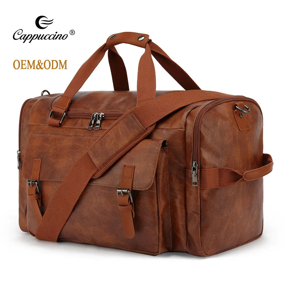 Custom logo pu leather travel bag luxury weekend overnight bag travel fashion men leather duffel bags