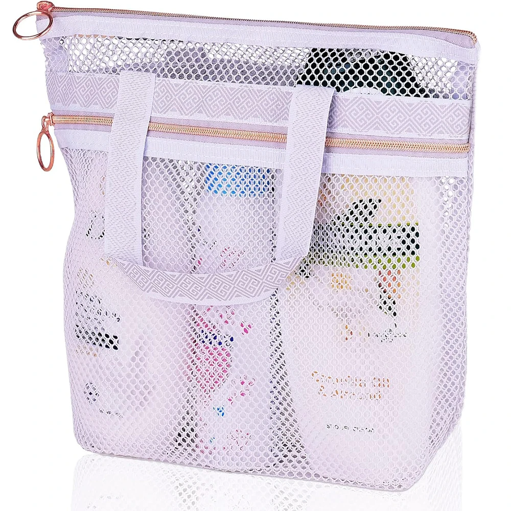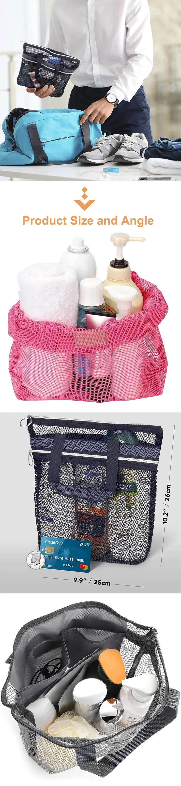 Best Price Fashion Portable Mesh Beach Shower Tote Travel Toiletry Makeup Bag For Women