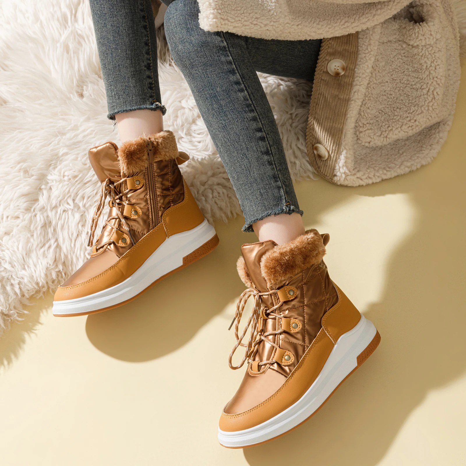 Custom outdoor high top warm boots High quality waterproof, non-slip and wear-resistant outdoor snow boots