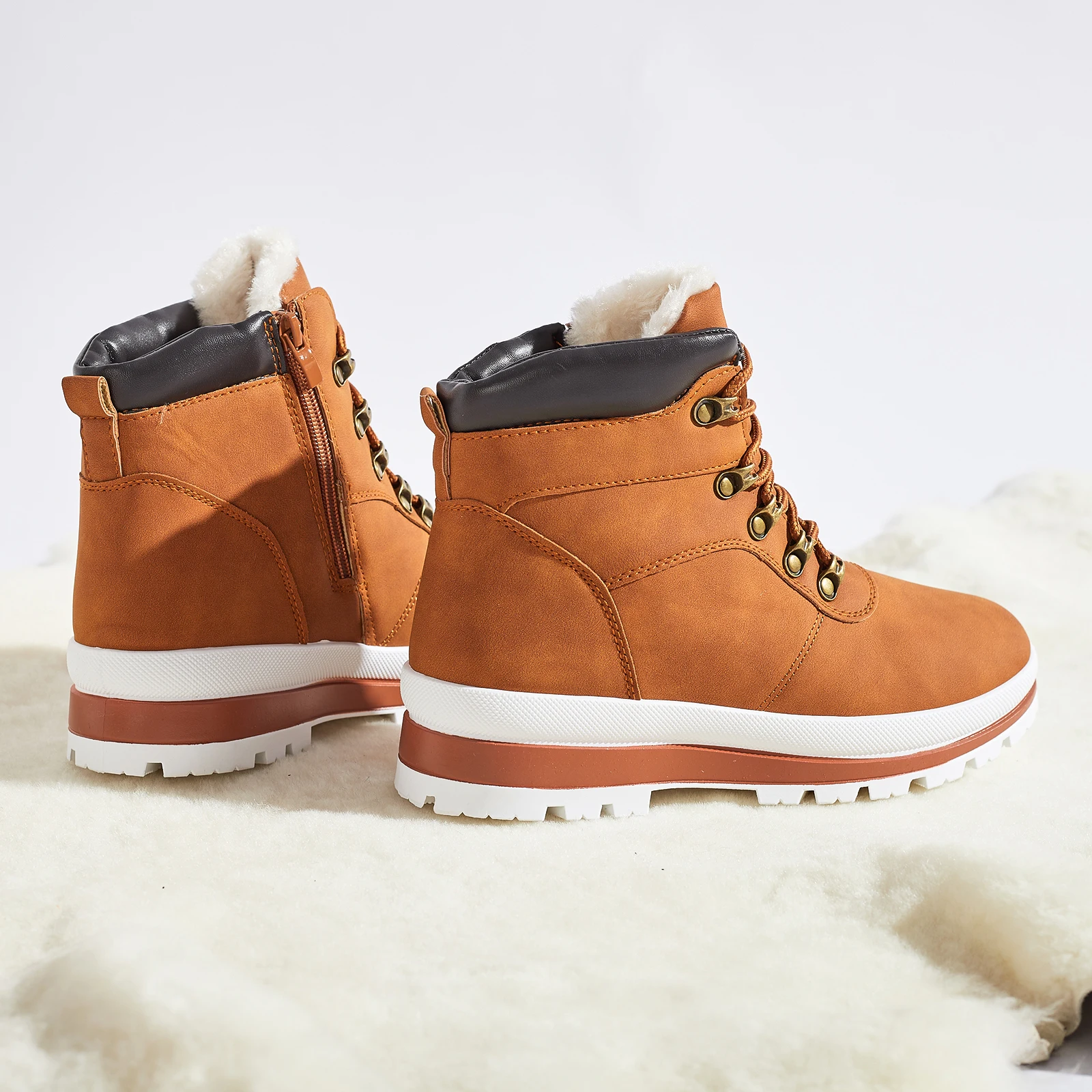 Wholesale Faux Fur Lining Warm Women Winter Ankle Boots Custom Pu Leather Ankle Boots For Ladies
