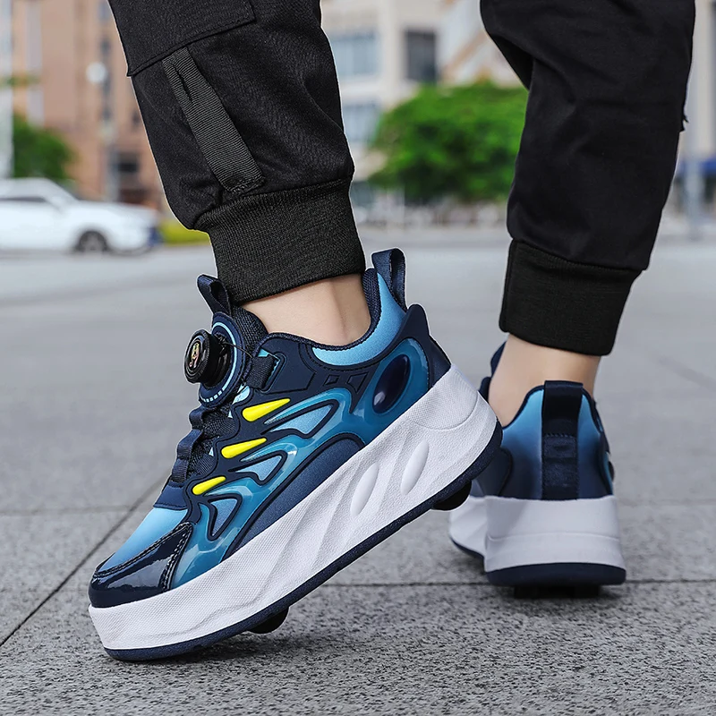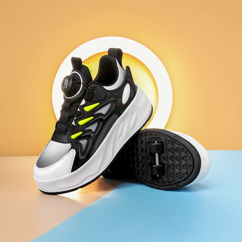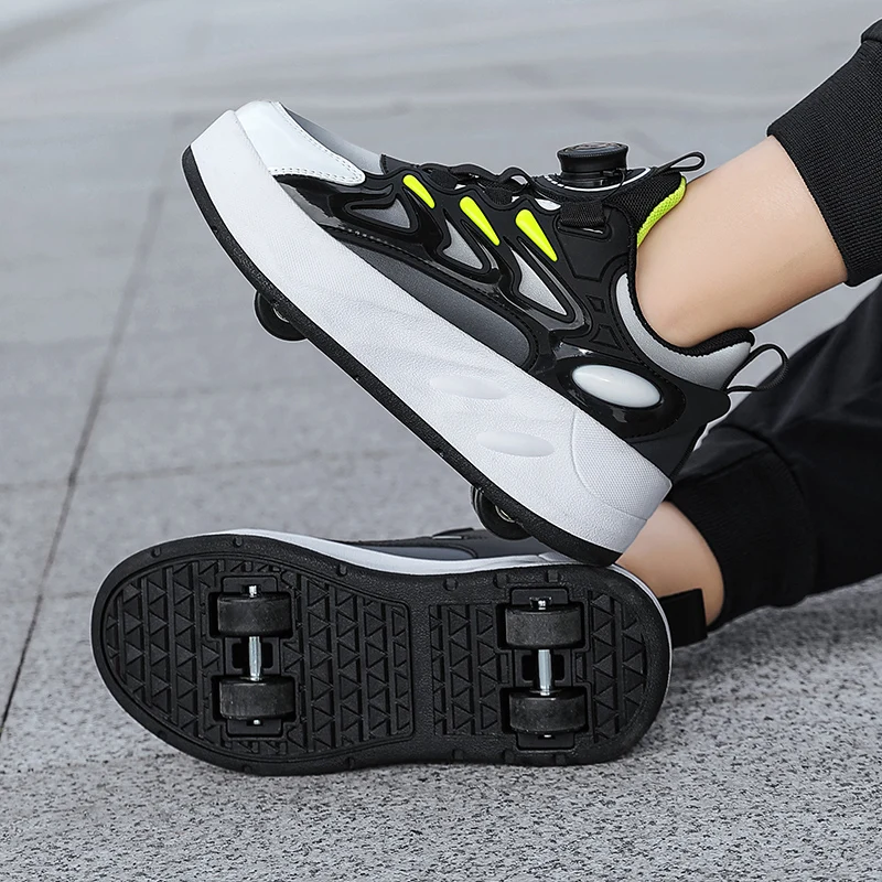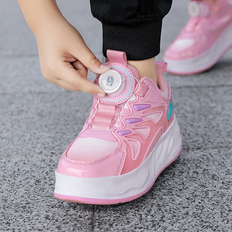2 In 1 Deformation White High Heelys Retractable 4 Four Wheel Sneakers Kids Kick Speed Roller Skating Shoes For Girls Boys Adult