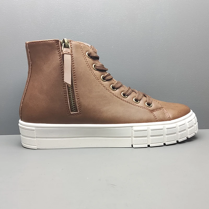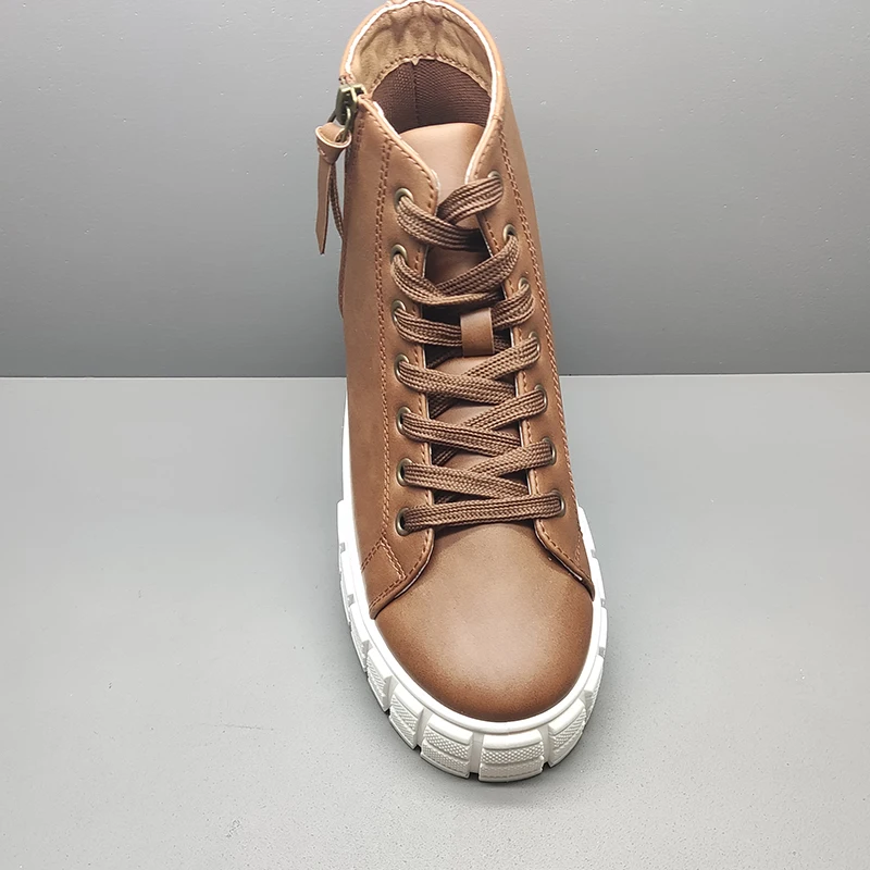 Hot Sale Lace Up Zipper Height Increasing Casual Classic Boots Women Shoes Western Designer Leather Ankle Boots