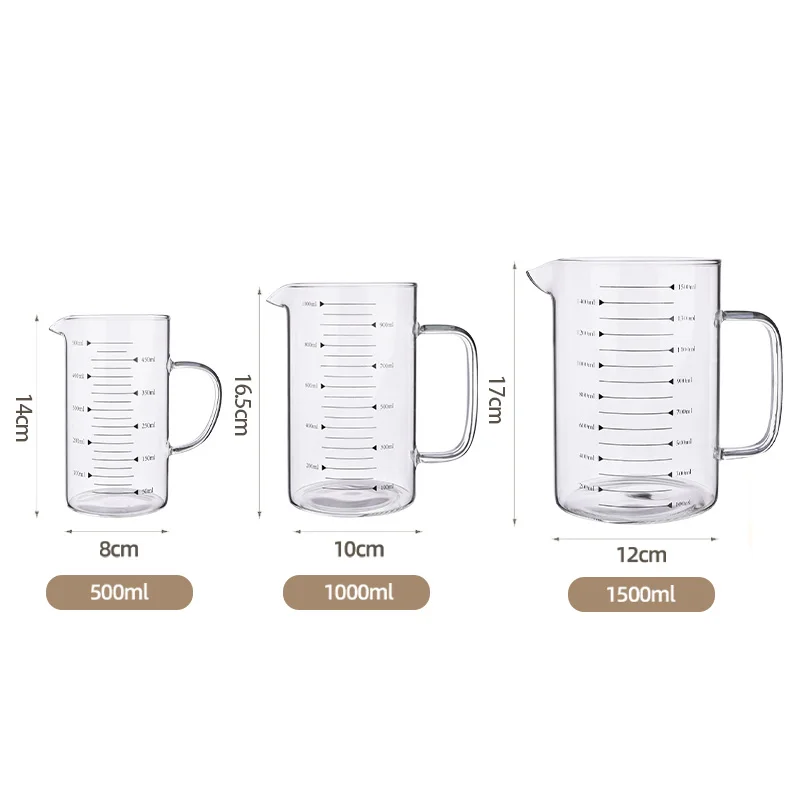 V-Shaped Spout 500ml/1000ml/1500ml Glass Measuring Cups Jugs Measuring Pitcher Beaker Measure Liquid Milk Glass Cup