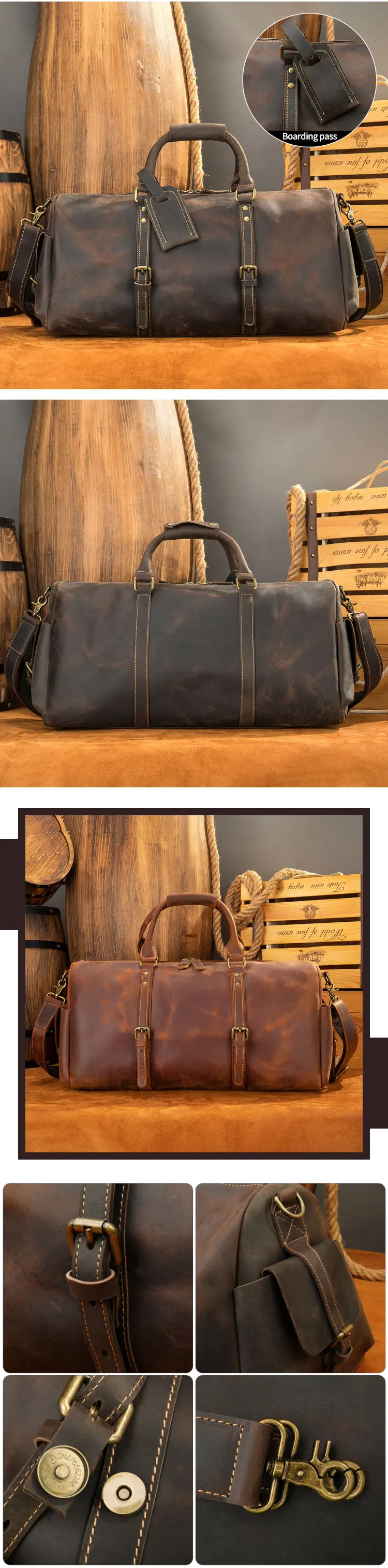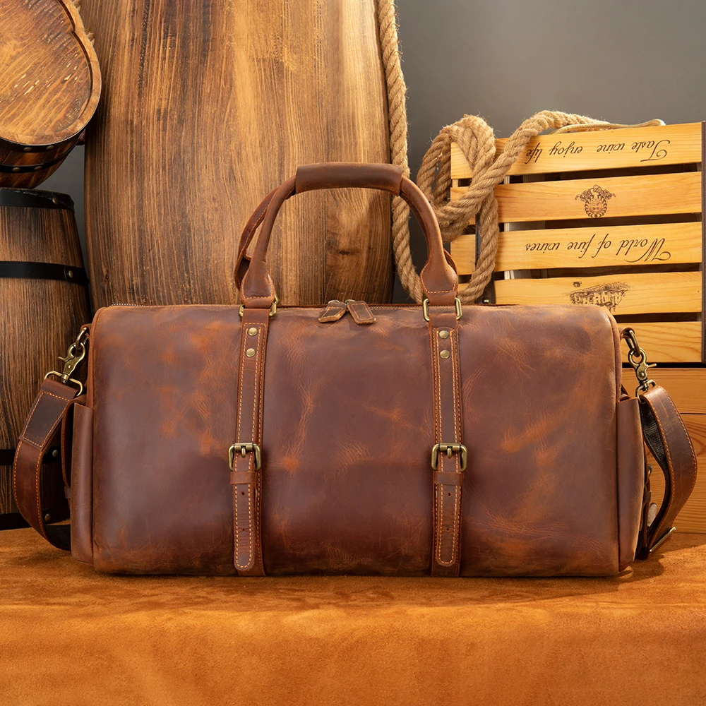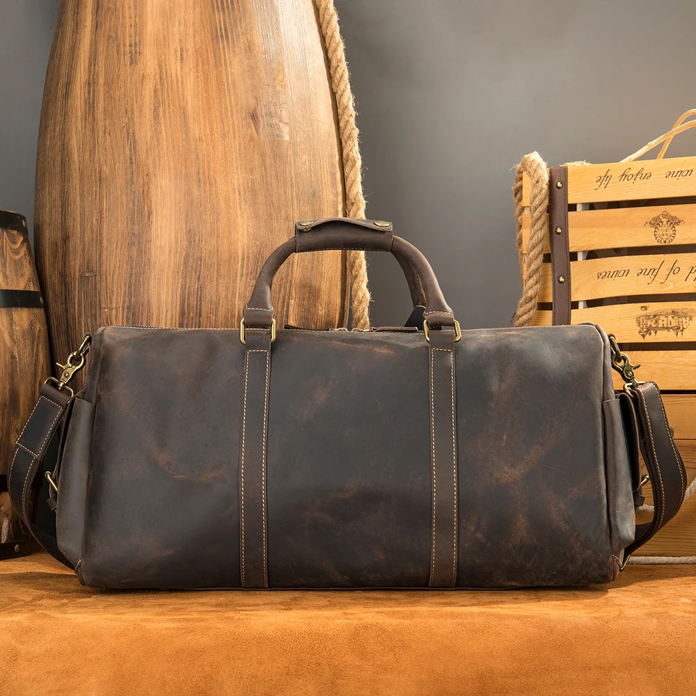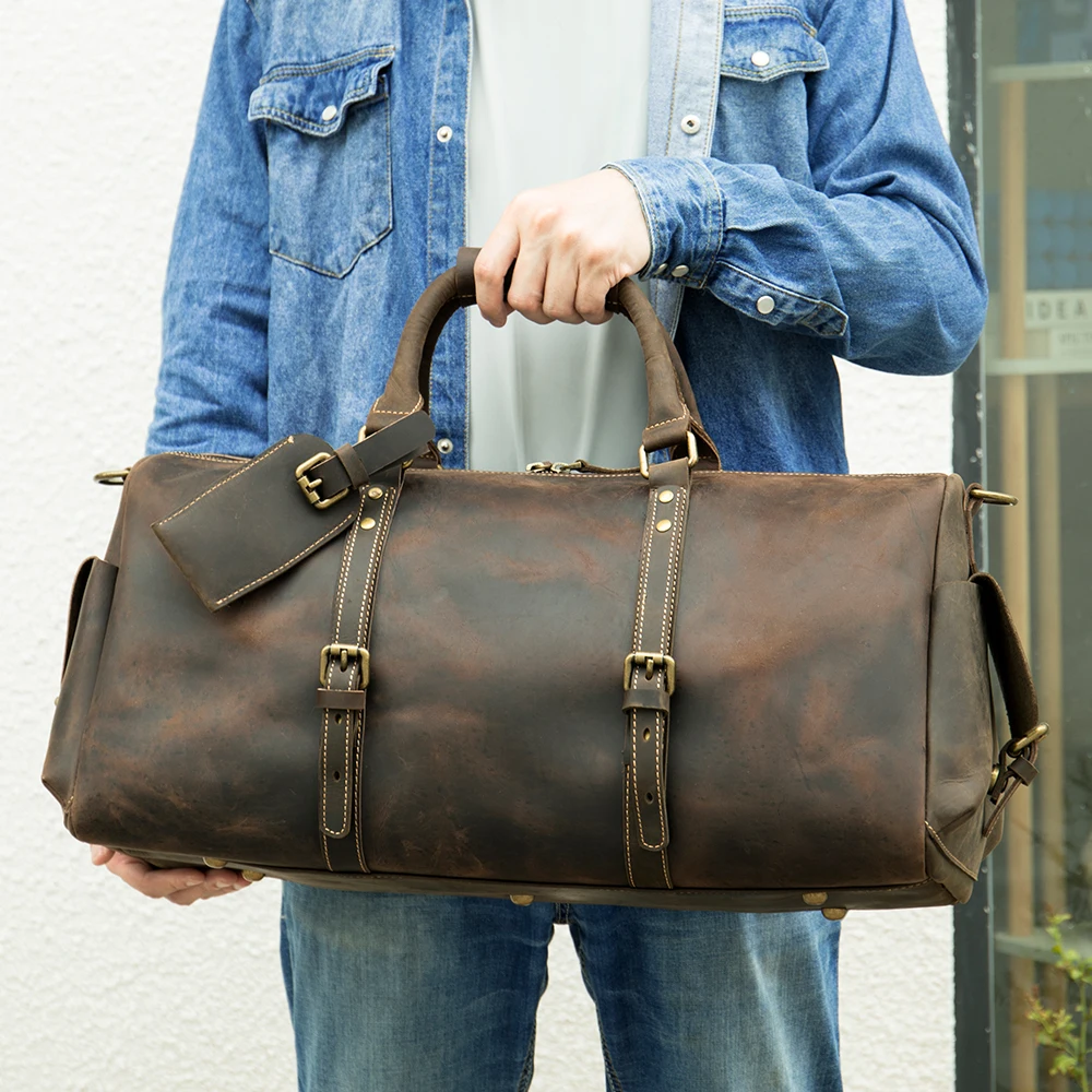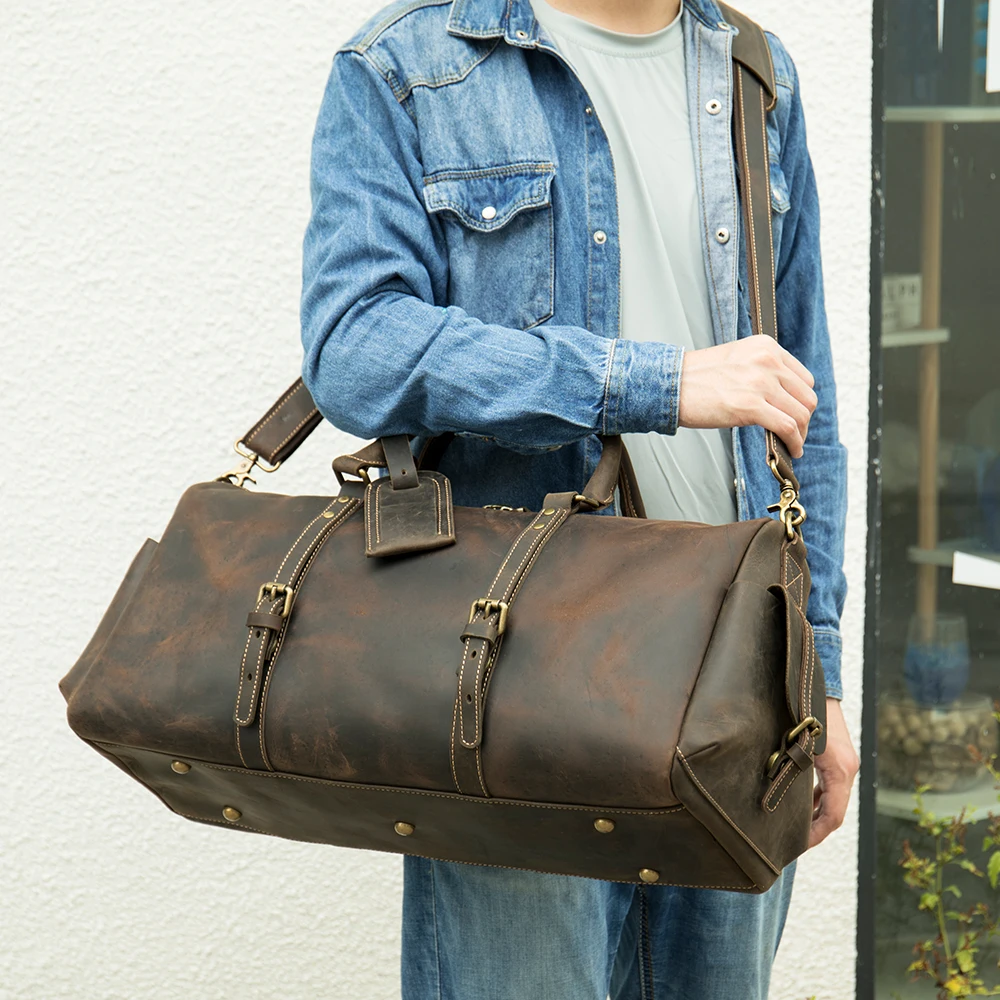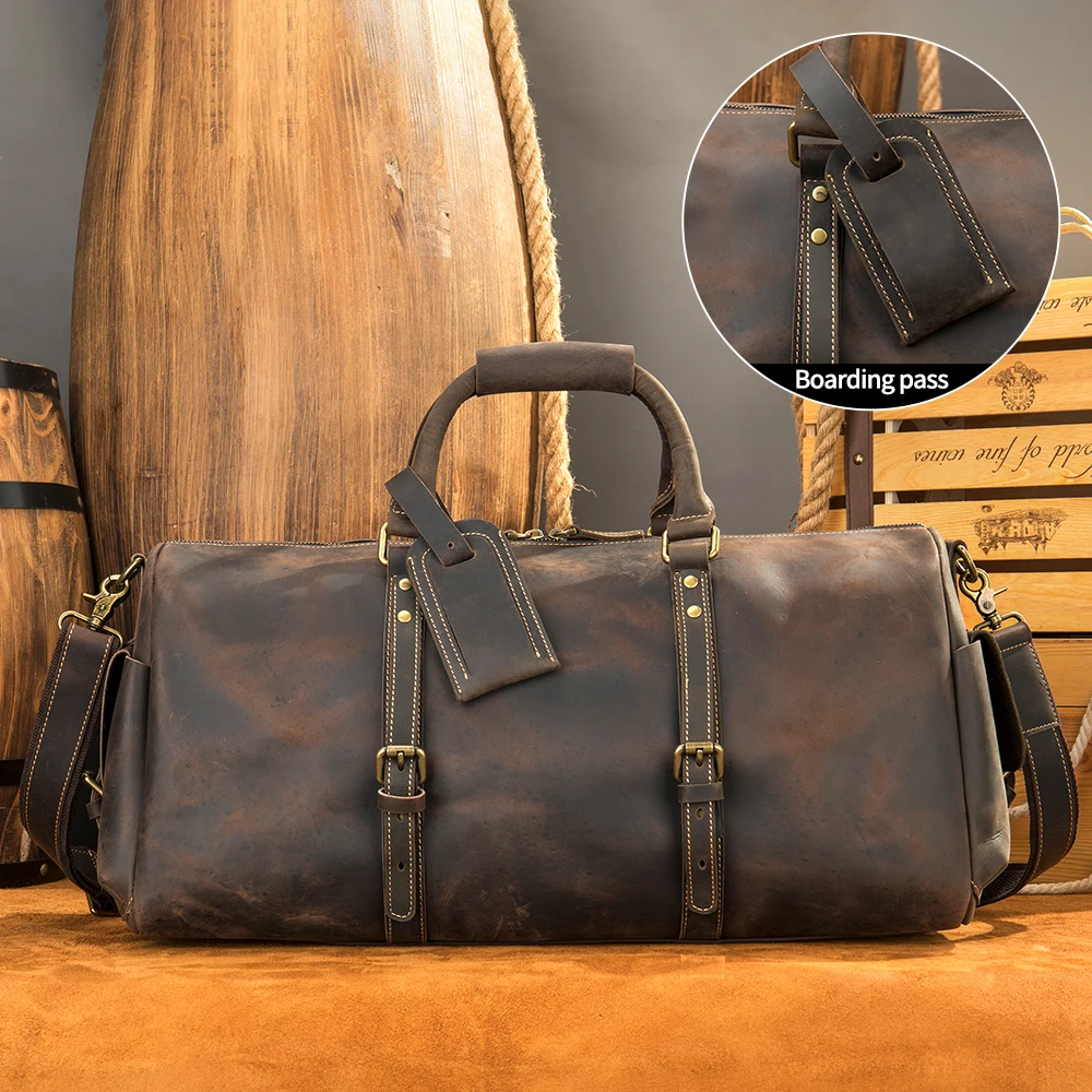 Product name | Crazy Horse Folding Travel Bag Men Leather Duffle Bag |