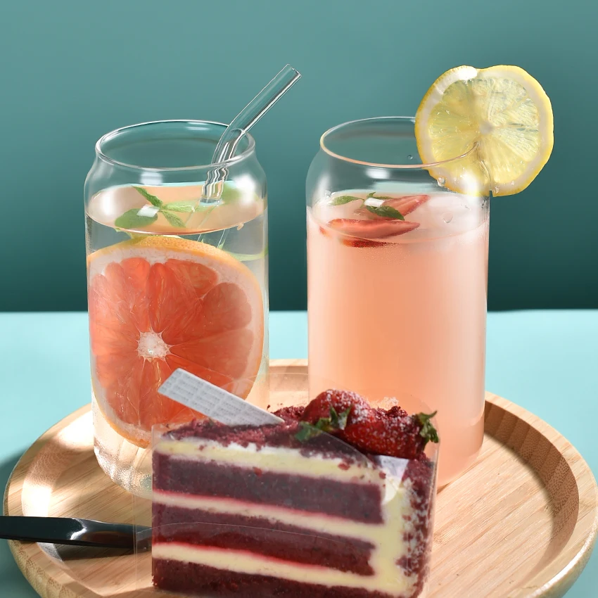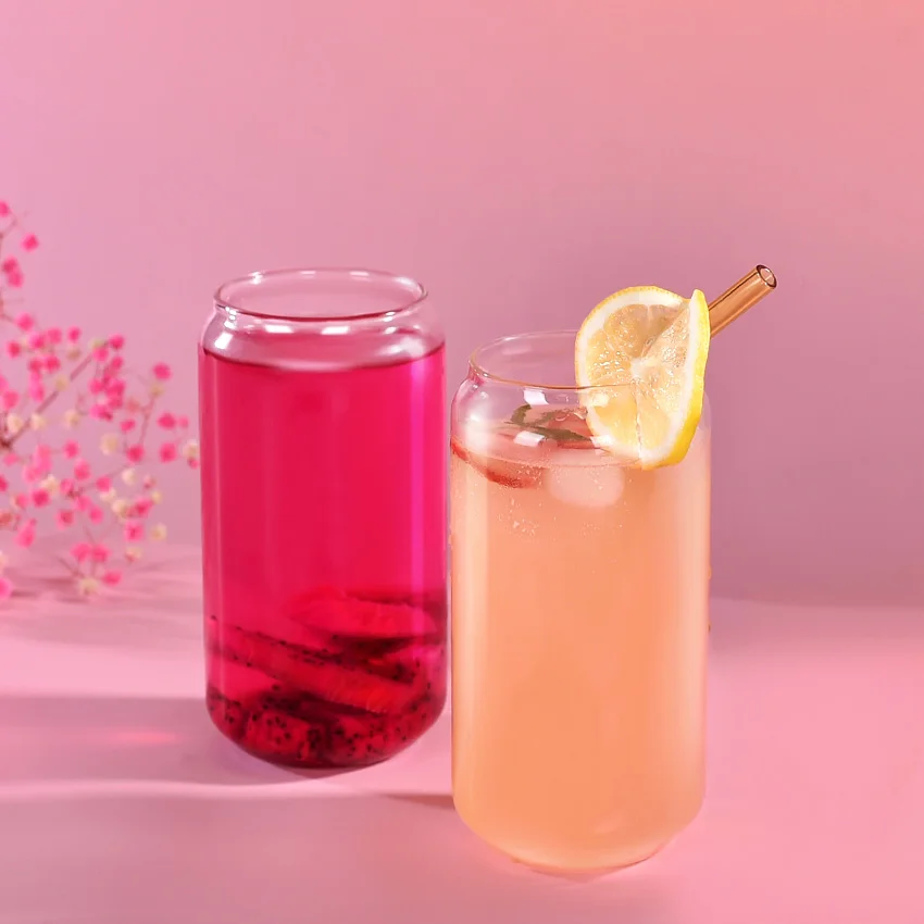 Custom 500ml 16oz glass water bottle clear drinking tumbler borosilicate reusable travel coffee glass mug cup with straw/lid