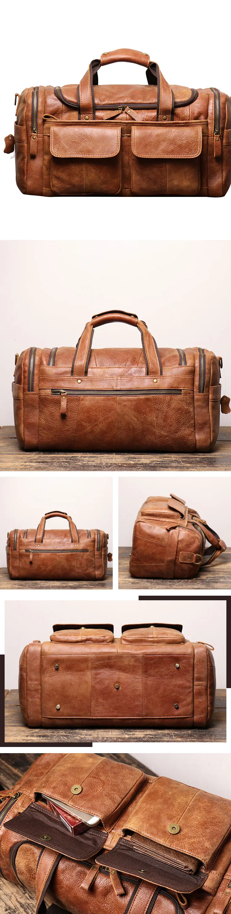 Overnight Weekend Sports Gym Carry On bag Handmade Custom Leather Duffle bags for Men Luggage Travel Bag